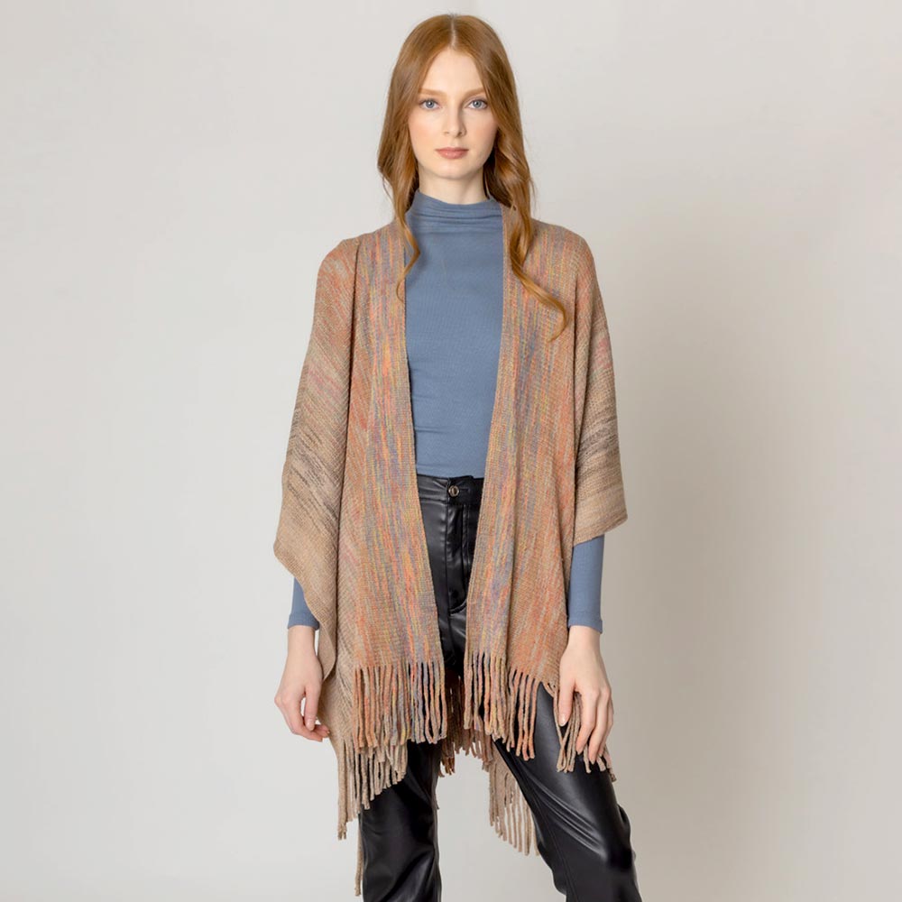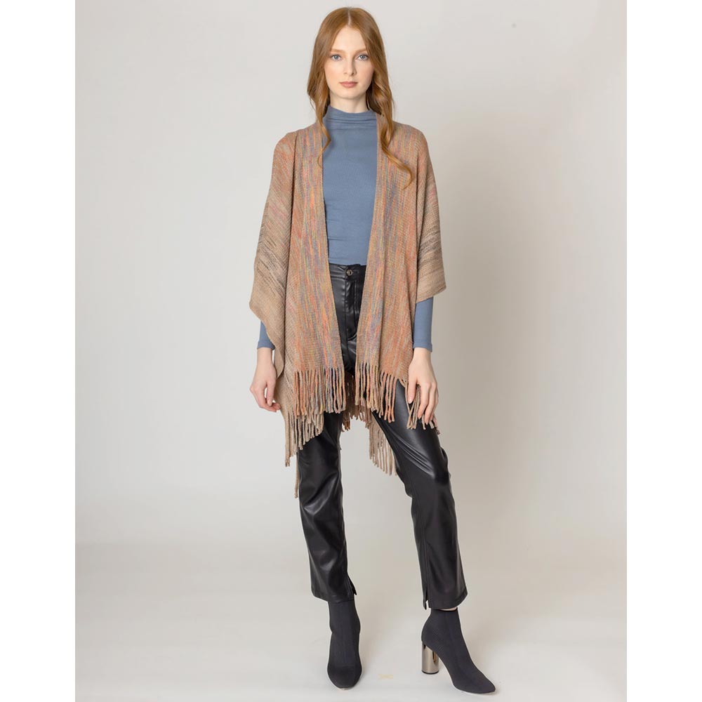 Multi Colored Metallic Knit Ruana Poncho