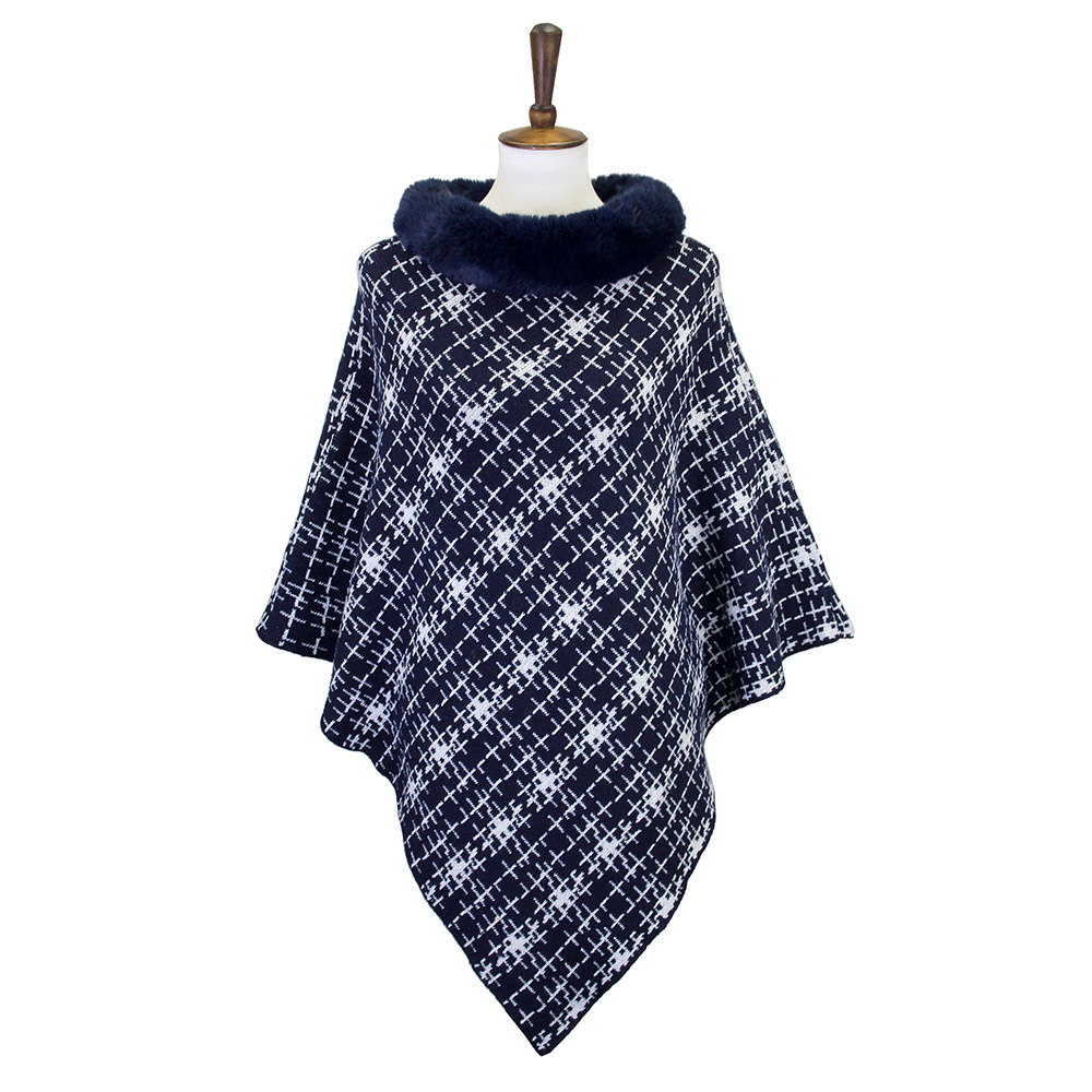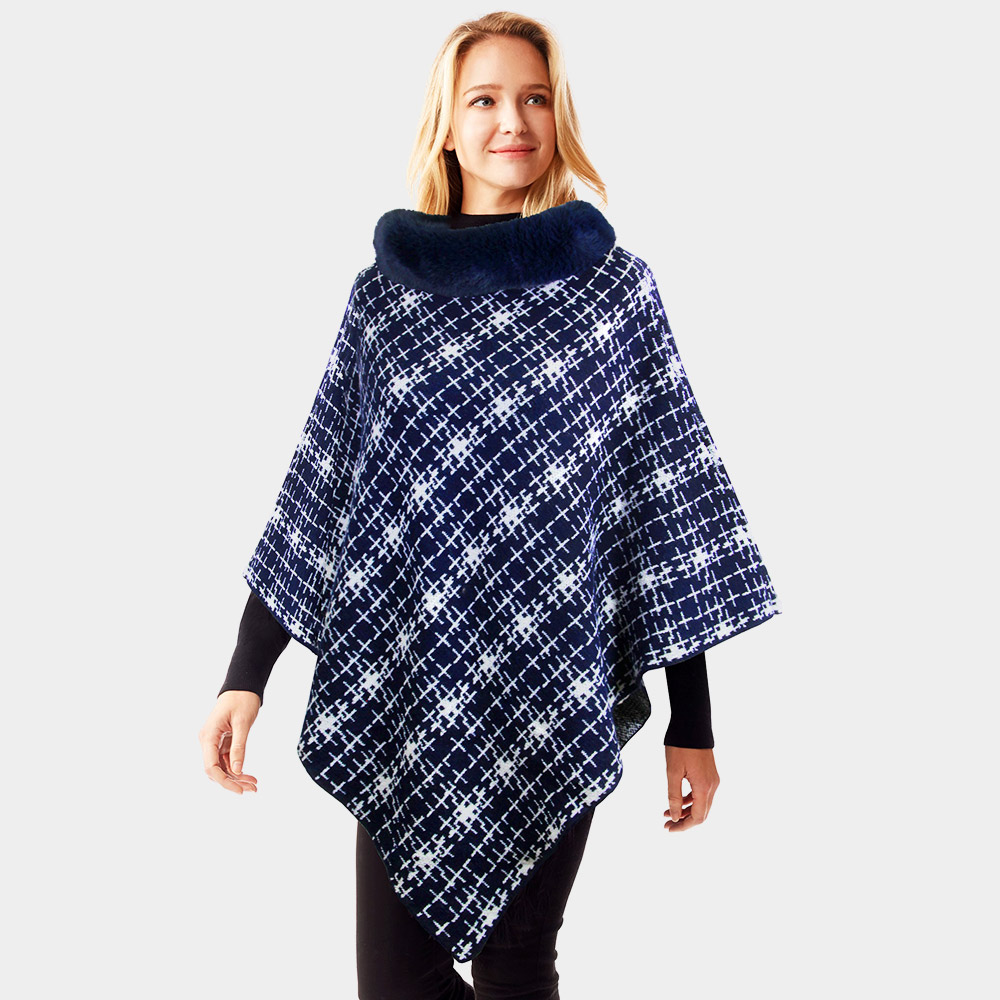 Faux Fur Trimmed Front Pockets Ruana Poncho