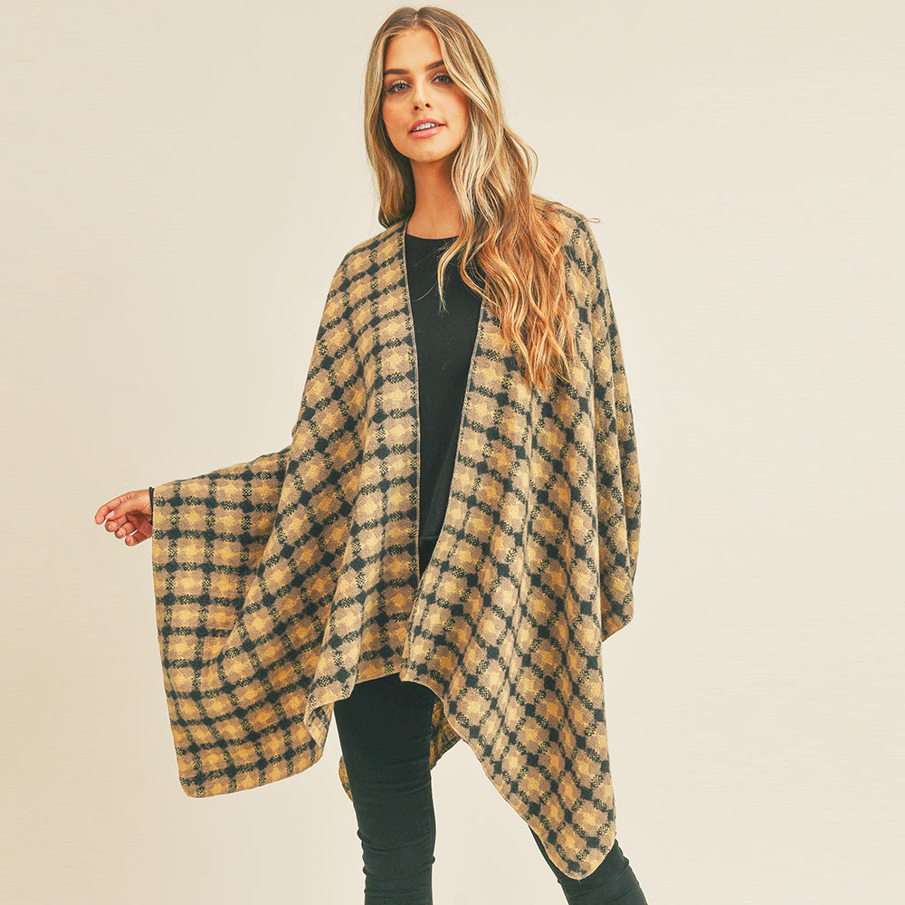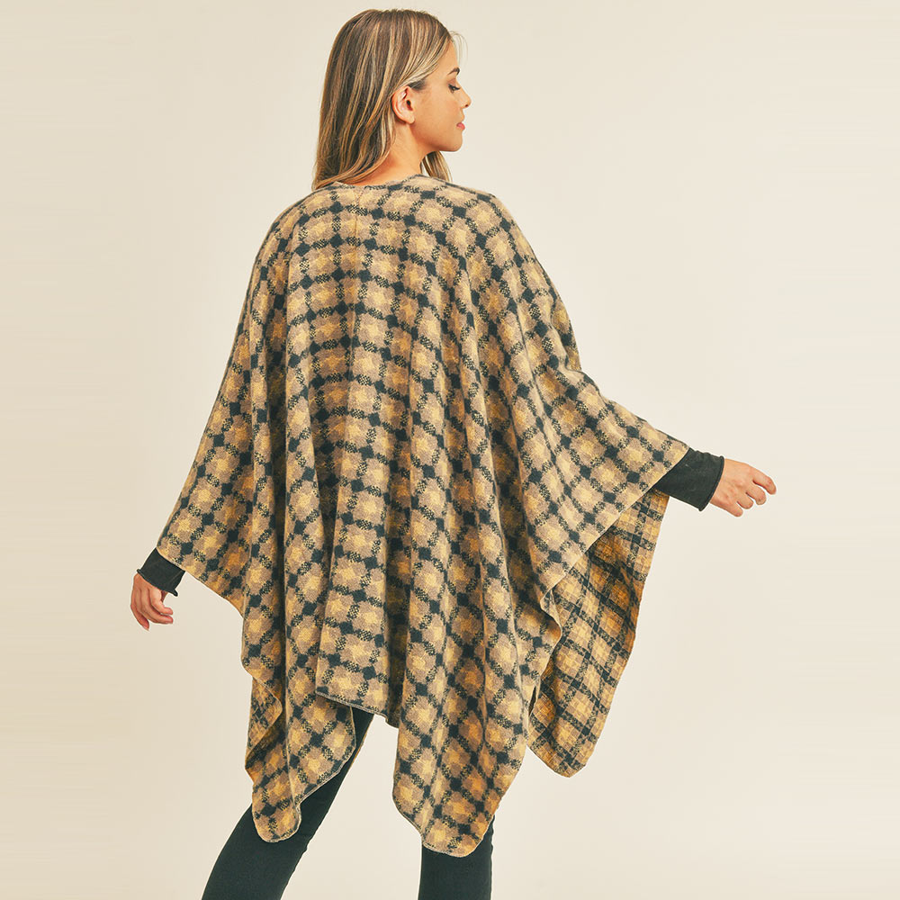 Plaid Check Pattern Ruana Poncho