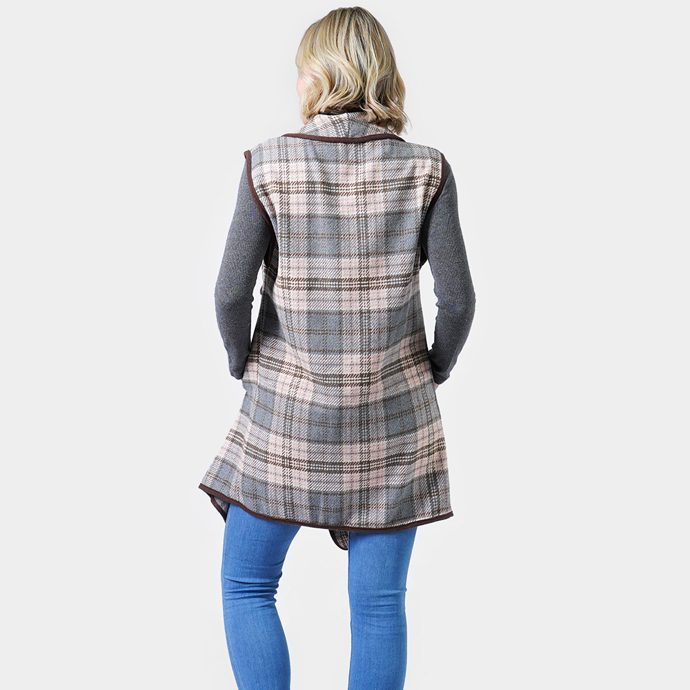 Details • Size : One Size, 35" L • Material : 100% Polyester • Elevate your wardrobe with this sleeveless plaid vest designed with an open front and relaxed silhouette. Ideal for layering over tops and sweaters, it adds a cozy yet polished touch, making it perfect for casual outings and transitional weather styling.