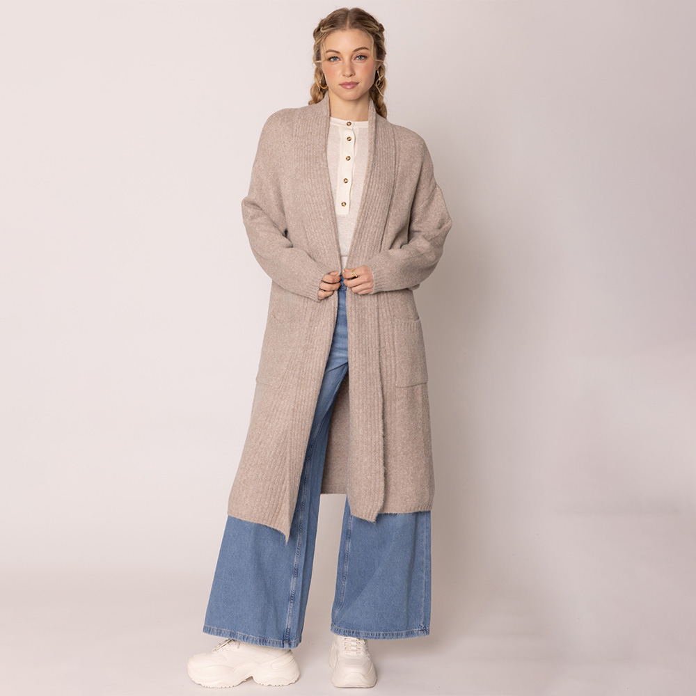 Details • Size : 23.6" X 36.2" • Material : 100% Acrylic • A long, easygoing cardigan designed for everyday layering. Its open-front style adds movement and comfort, making it perfect for casual looks or relaxed ensembles. Ideal for creating effortless outfits through every season.