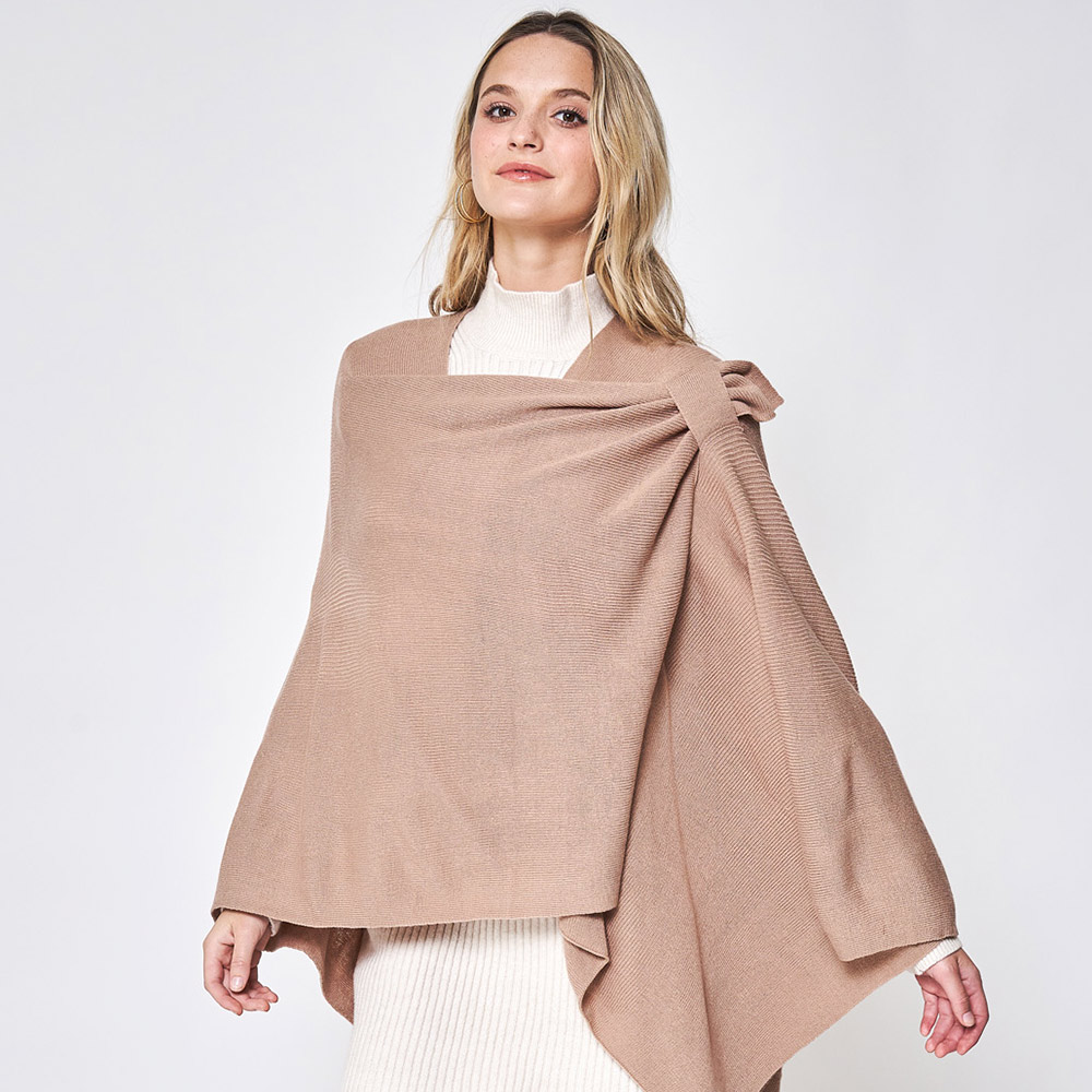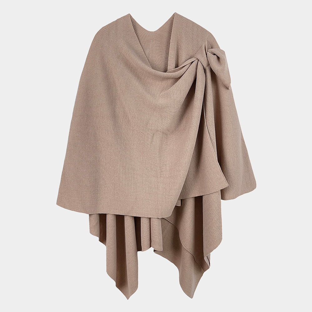 • Stylish asymmetrical poncho wrap featuring a feminine side bow and soft, cozy fabric. Perfect for layering in cool weather, this versatile piece adds warmth and elegance to any outfit—ideal for casual wear, office looks, or chic seasonal transitions.