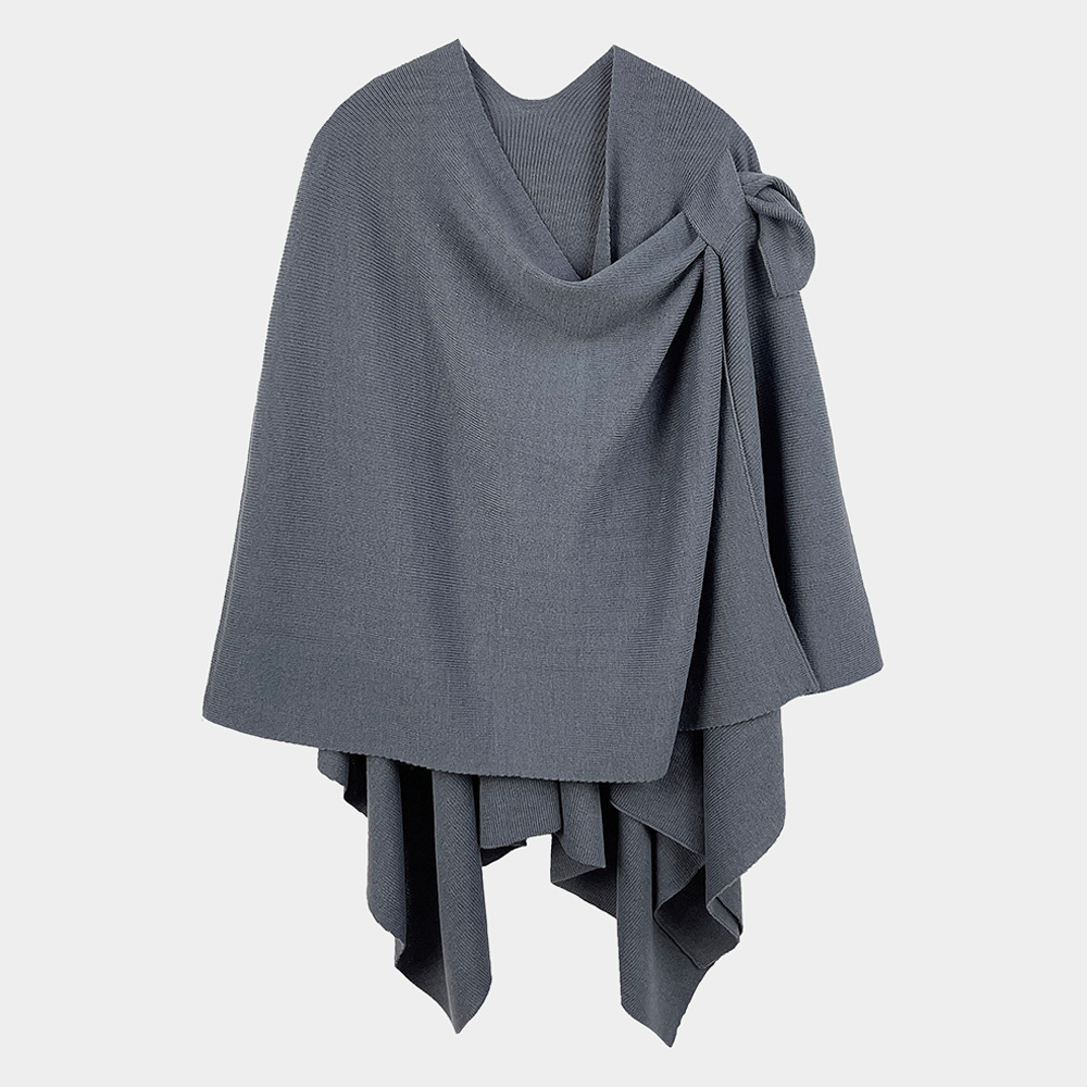 • Stylish asymmetrical poncho wrap featuring a feminine side bow and soft, cozy fabric. Perfect for layering in cool weather, this versatile piece adds warmth and elegance to any outfit—ideal for casual wear, office looks, or chic seasonal transitions.