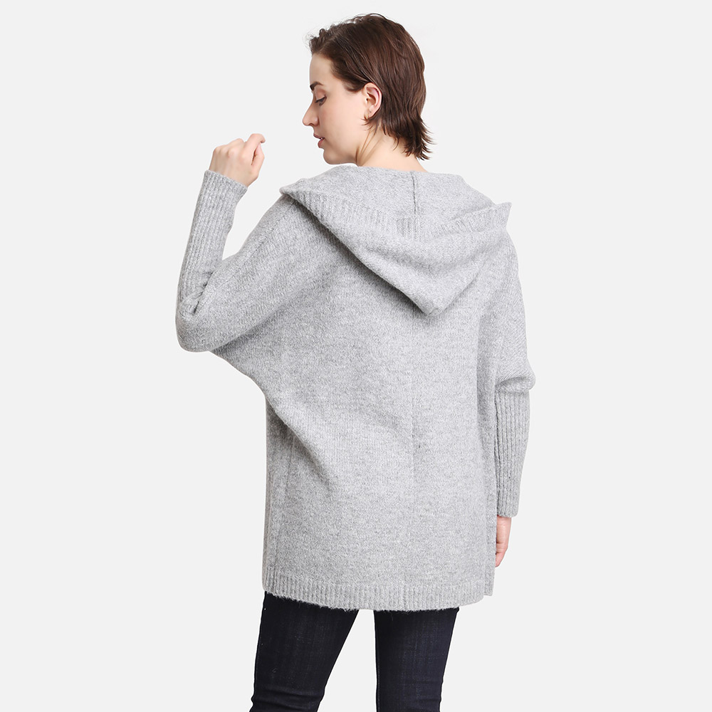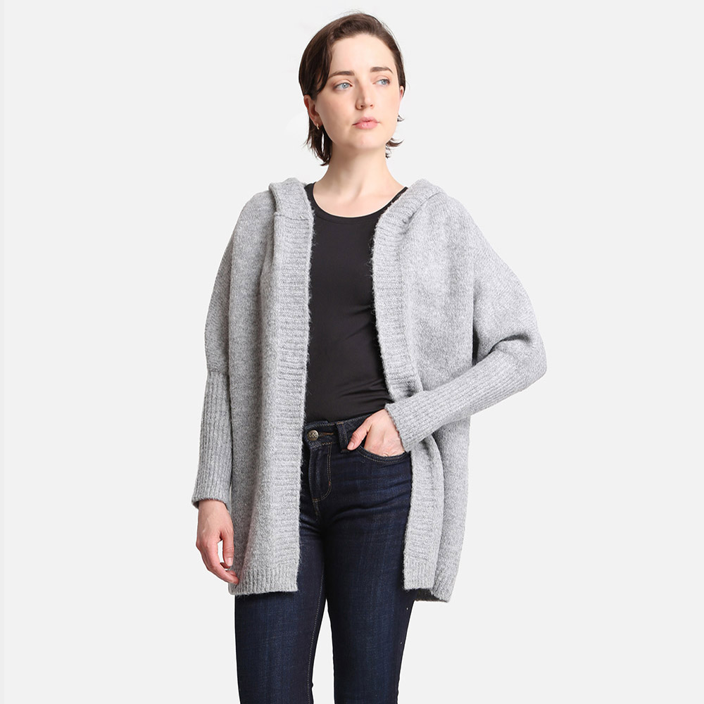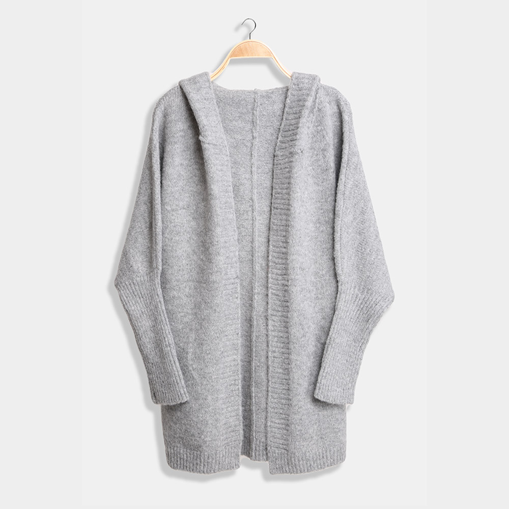 Solid Color Knitted Hood and Ribbed Edges Cardigan