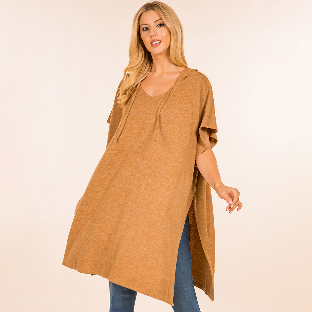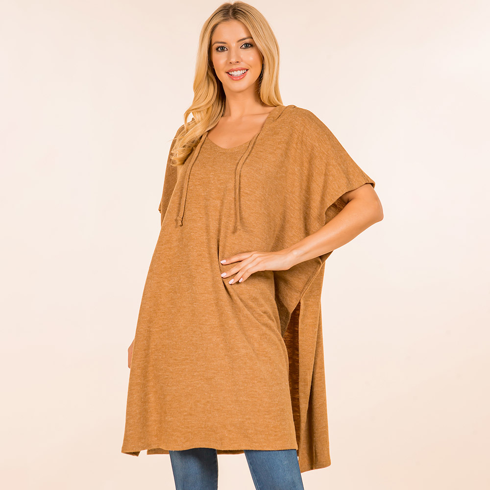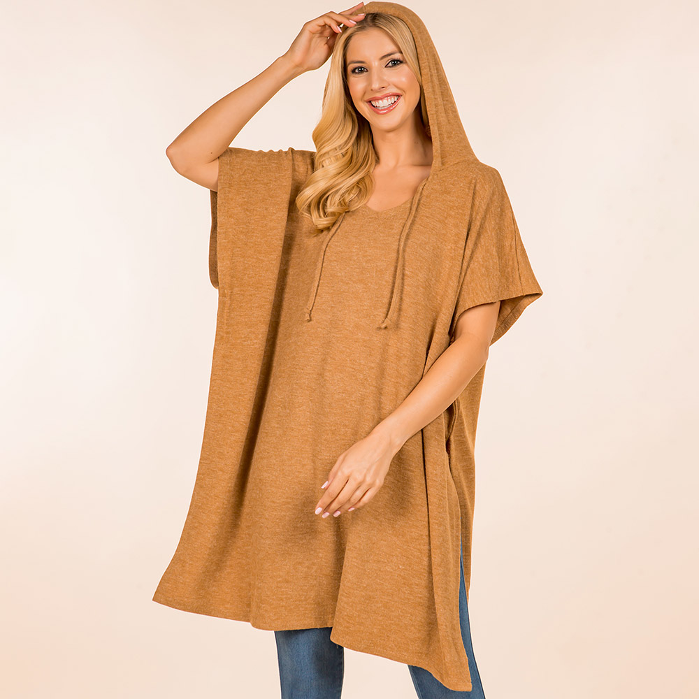 • Stay warm and stylish in this hooded poncho, perfect for layering year-round. Featuring a relaxed silhouette and drawstring hood, this one-size outerwear is ideal for everyday comfort, travel, or lounging. A must-have wardrobe essential for effortless chic looks.