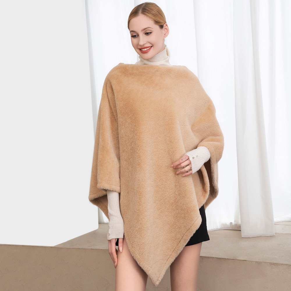 Solid Faux Fur Poncho Solid Faux Fur Poncho