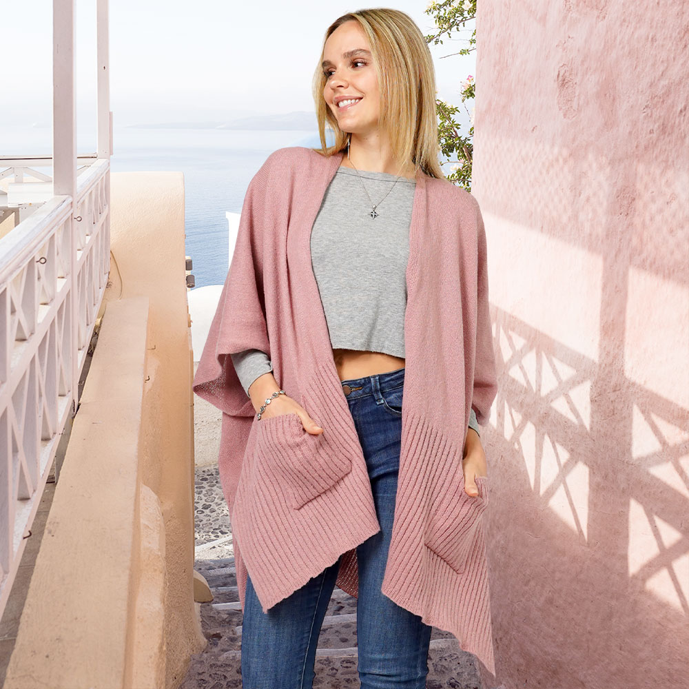 Details • Size : One Size • Material : 100% Polyester • Add effortless style to your look with this open front knit cardigan featuring roomy pockets and a relaxed fit. Perfect for layering over casual outfits, this versatile piece offers comfort and charm, making it ideal for everyday wear, lounging, or travel.
