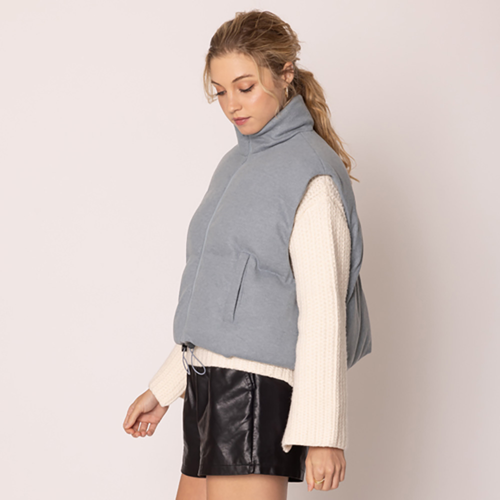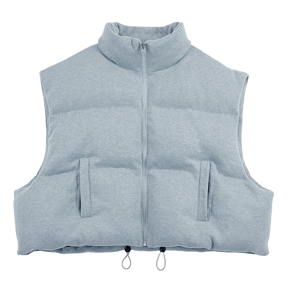 • Elevate your layered looks with this sleeveless puffer vest featuring a high neck, zip closure, and drawstring hem. Designed with front pockets for convenience, it offers both warmth and style, making it a versatile outerwear piece for casual outings and transitional seasons.