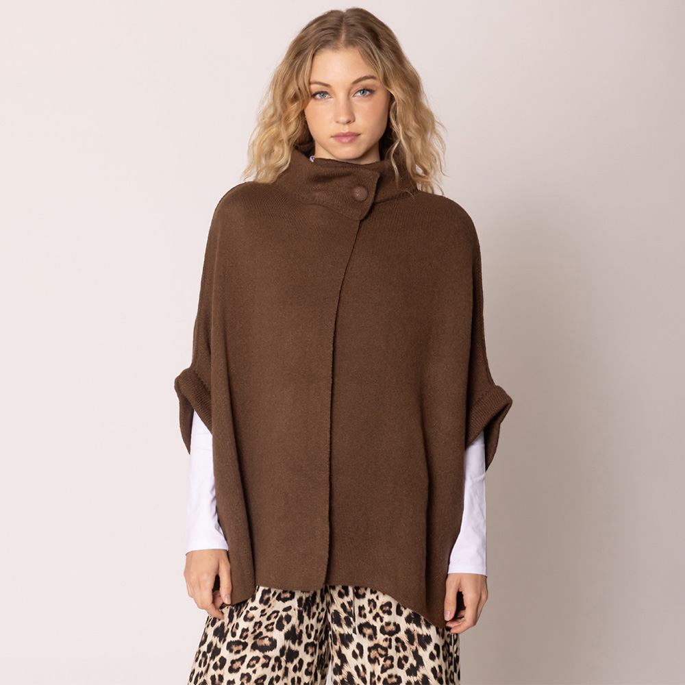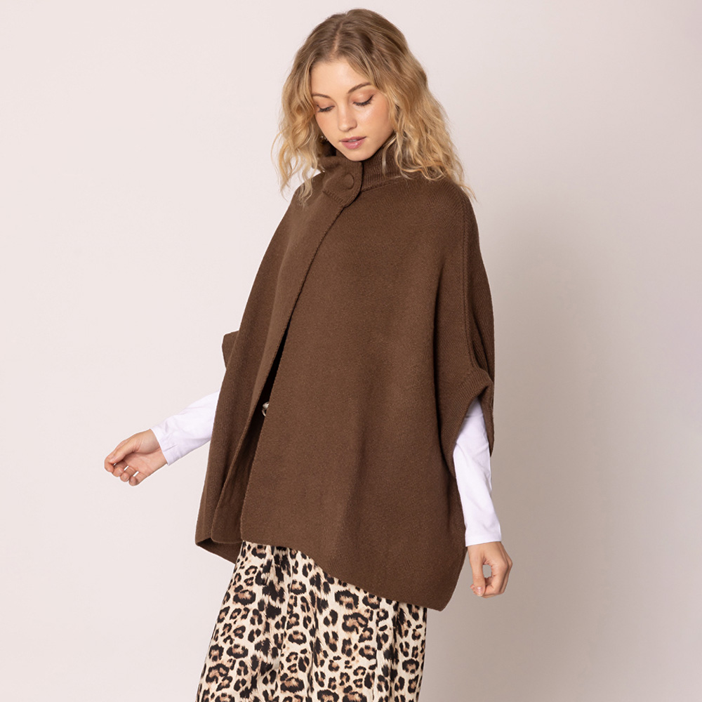 Details • Size : 30.7" X 26" L • Material : 100% Acrylic • Elevate your cold-weather style with this chic button-front cape. Designed with a high collar and relaxed drape, it layers effortlessly over any outfit, offering a polished look for work, travel, or casual wear.