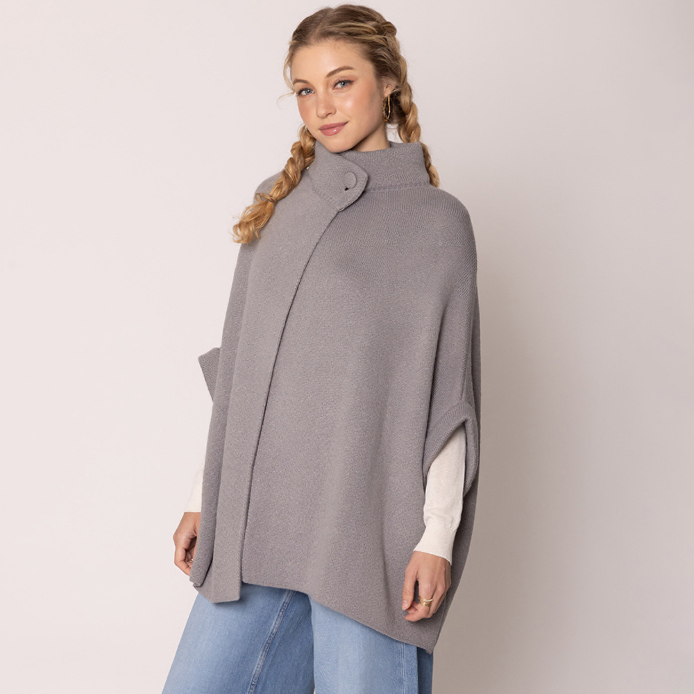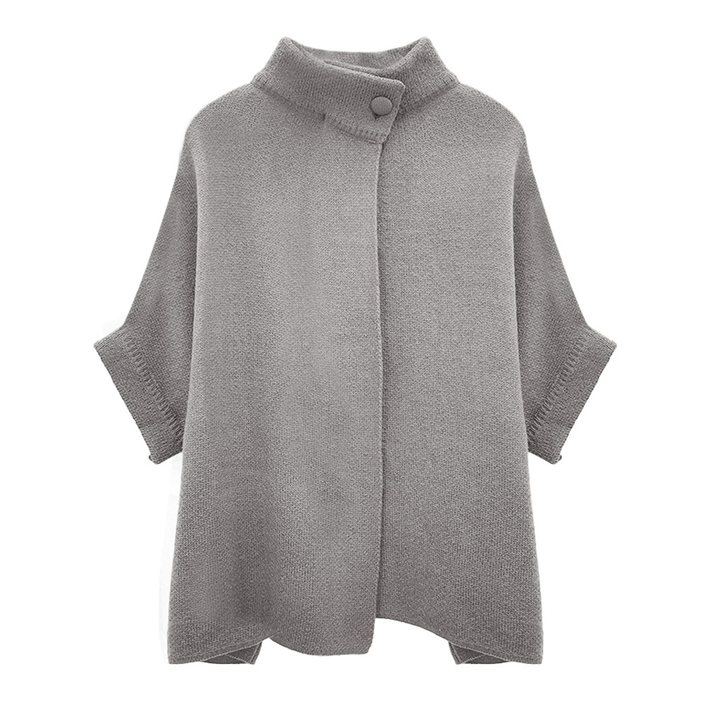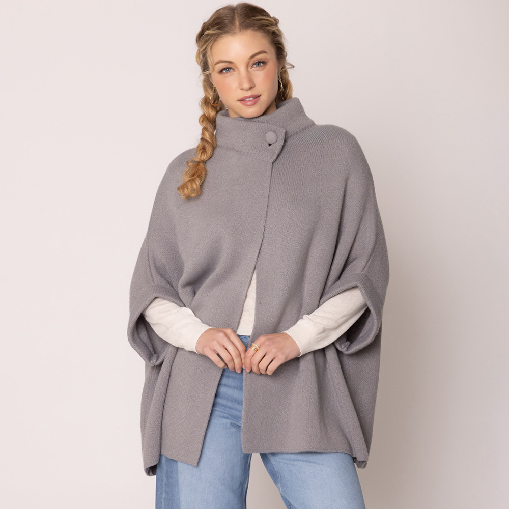 Details • Size : 30.7" X 26" L • Material : 100% Acrylic • Elevate your cold-weather style with this chic button-front cape. Designed with a high collar and relaxed drape, it layers effortlessly over any outfit, offering a polished look for work, travel, or casual wear.