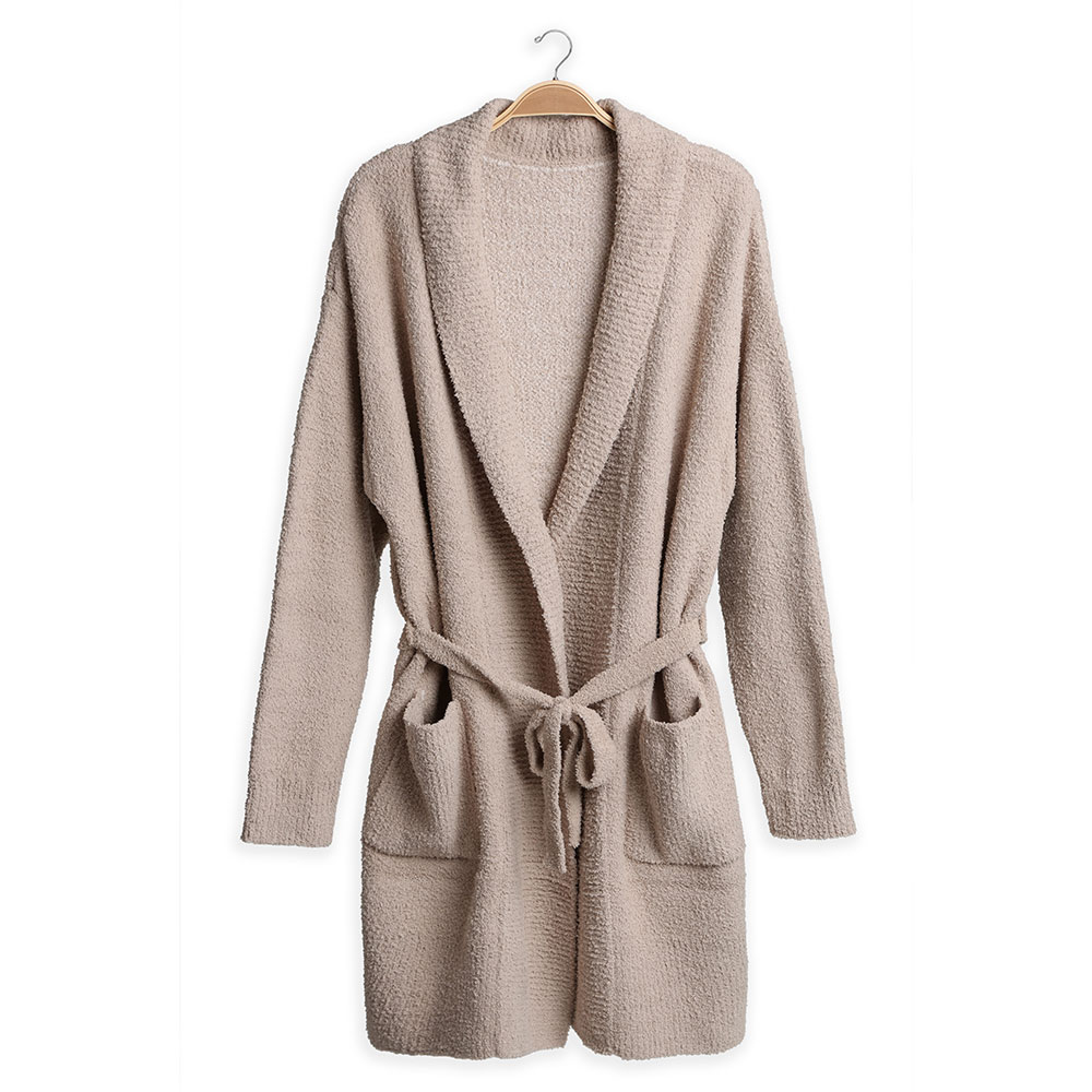 • Keep it classic with this solid knit robe, featuring a clean design, tie belt, and front pockets. Ideal for versatile, cozy loungewear that never goes out of style.