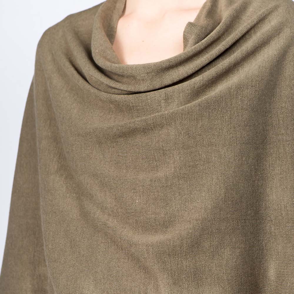 • Elevate your layering game with this versatile knit poncho wrap. Featuring a sleek, minimalist silhouette, this piece can be worn as a relaxed scarf or draped as an asymmetrical poncho. Crafted for comfort and style, it's ideal for transitioning through the seasons with effortless flair.