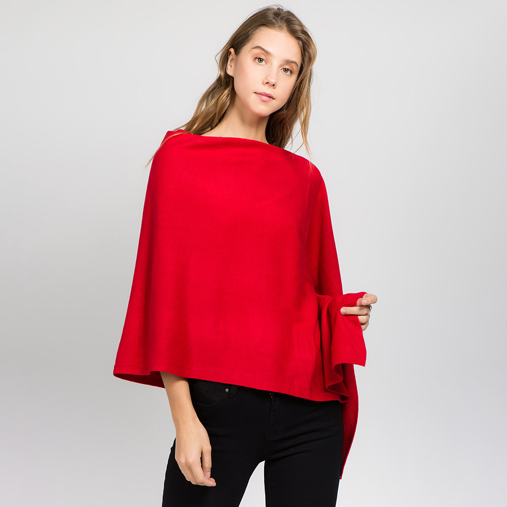 Details • Size : One Size • Material : 100% Acrylic • Elevate your layering game with this versatile knit poncho wrap. Featuring a sleek, minimalist silhouette, this piece can be worn as a relaxed scarf or draped as an asymmetrical poncho. Crafted for comfort and style, it's ideal for transitioning through the seasons with effortless flair.