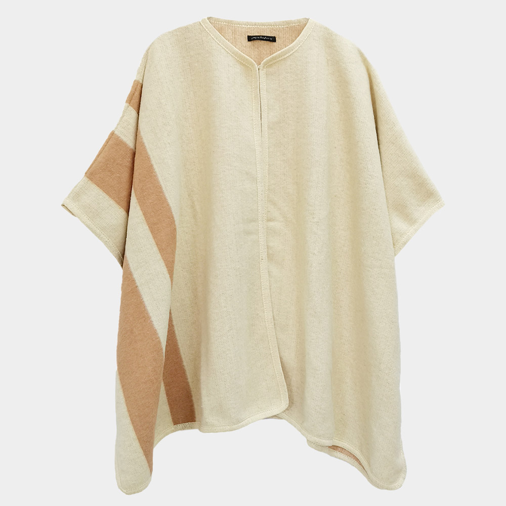 Details • Size : 43.3" X 31.5" • Material : 100% Polyester • Stylish open front cape wrap with a modern two-tone design and flowing silhouette. Perfect for layering over dresses or casual outfits for added warmth and elegance. A versatile outerwear staple for transitional seasons.