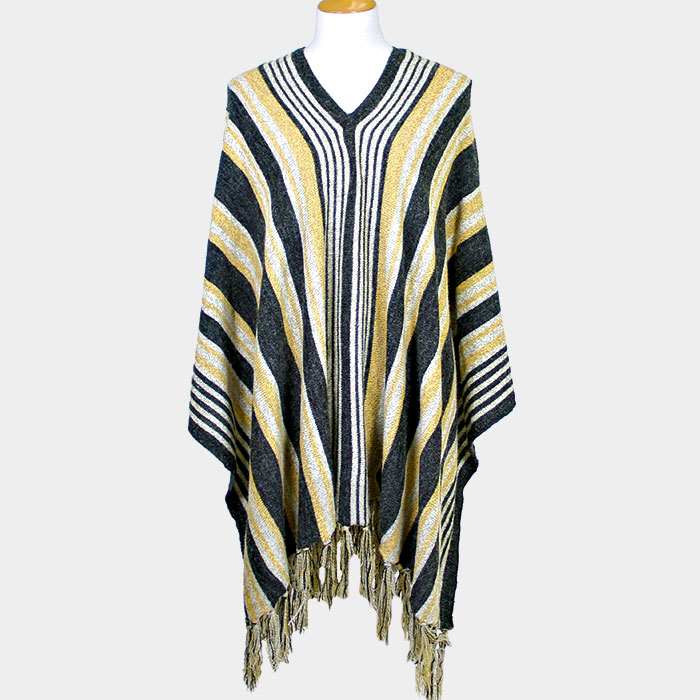 STRIPED FRINGE EDGE PONCHO SWEATER