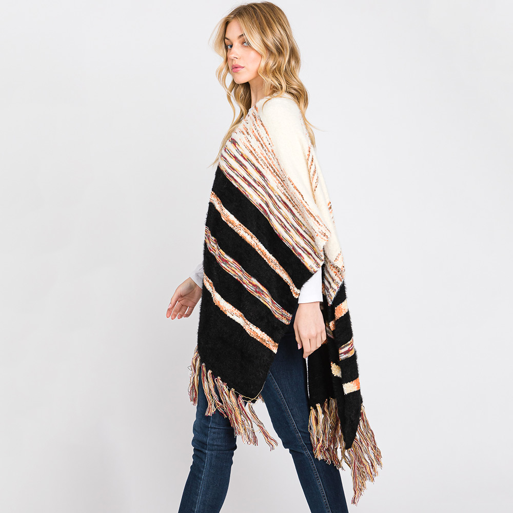 Chevron Zigzag Pattern Fringe Knit Cardigan