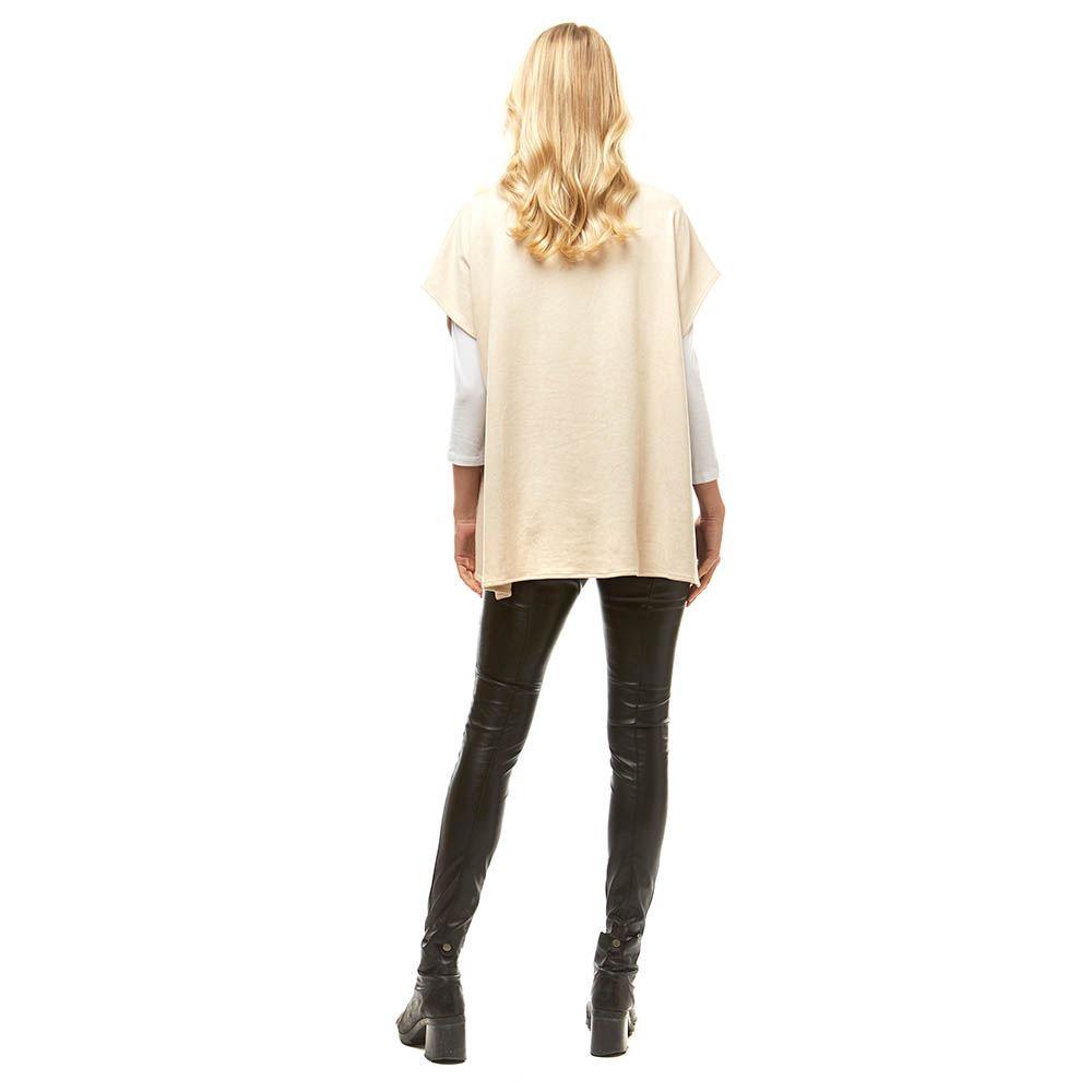 Faux Fur Trimmed Solid Fringe Ruana Poncho