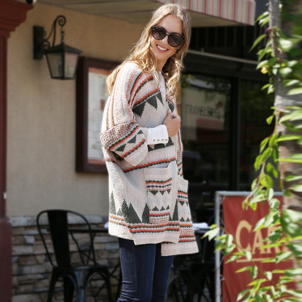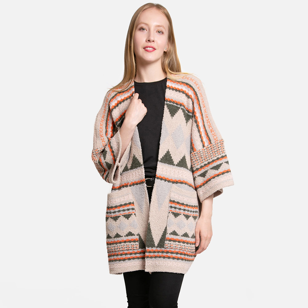 Tribal Patterned Front Pockets Cardigan