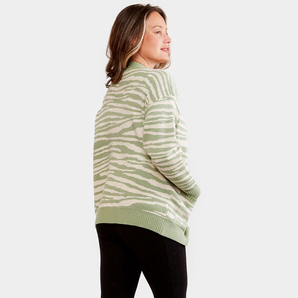 Zebra Pattern In Front Button Closure Pocket Cardigan
