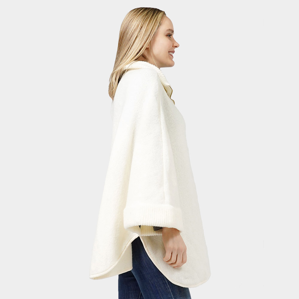 Details • Size : One Size (27.5" L) • Material : 100% Polyester • Modern cape coat featuring a zip-up front, funnel neckline, and wide sleeves with cuff detail. Offers a cozy, relaxed fit that's perfect for layering in cool weather. A chic blend of comfort and minimalist style for everyday wear.