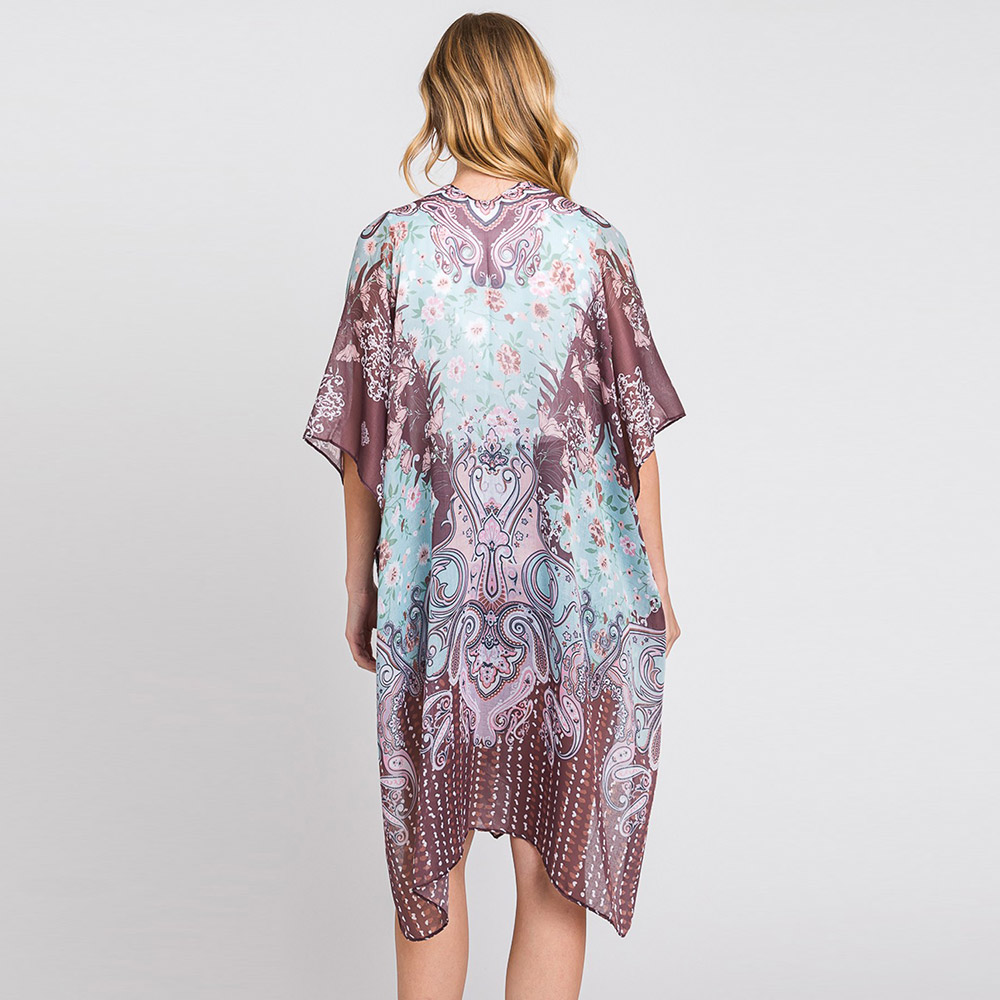Trayed Trim Open Front Tweed Poncho Cardigan