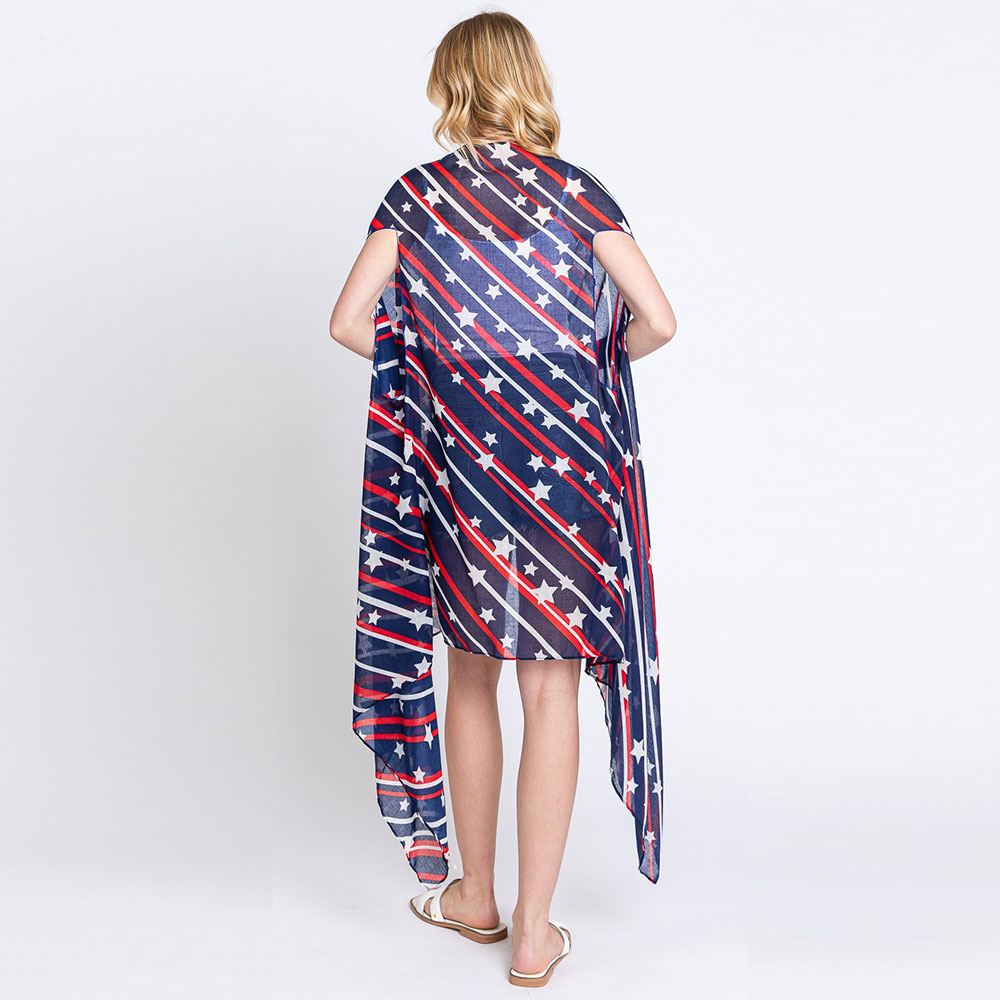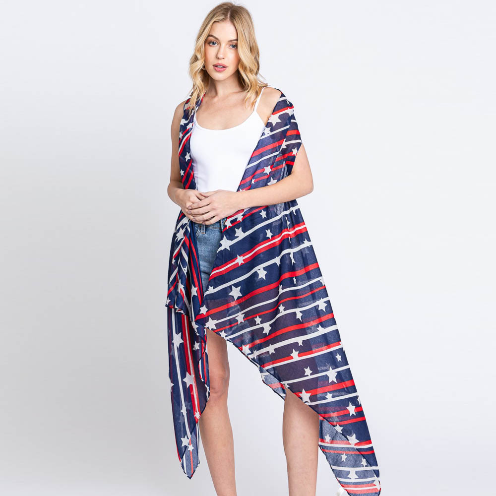 5PCS - American USA Theme Emerald Cut Round Stone Stretch Evening Bracelets