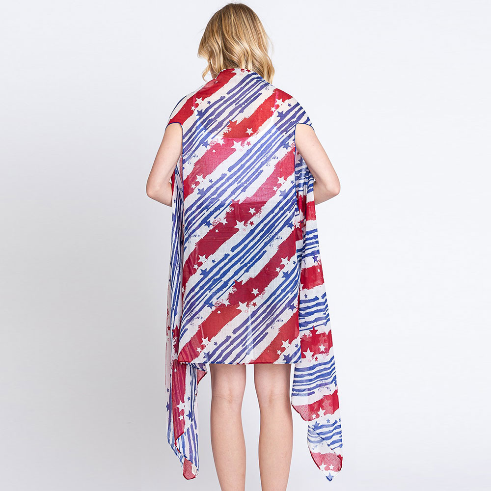 Glittered American USA Flag Triple Rhombus Layered Dangle Earrings