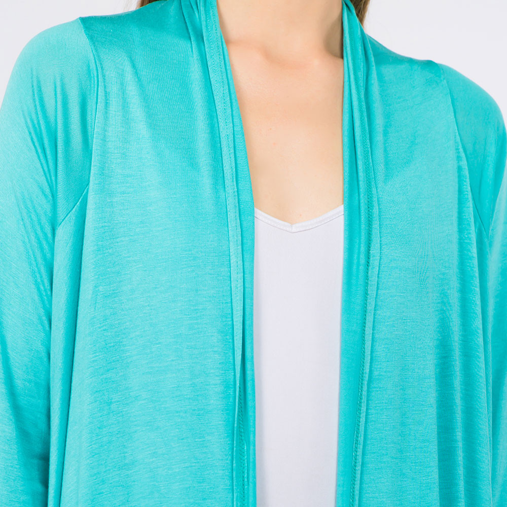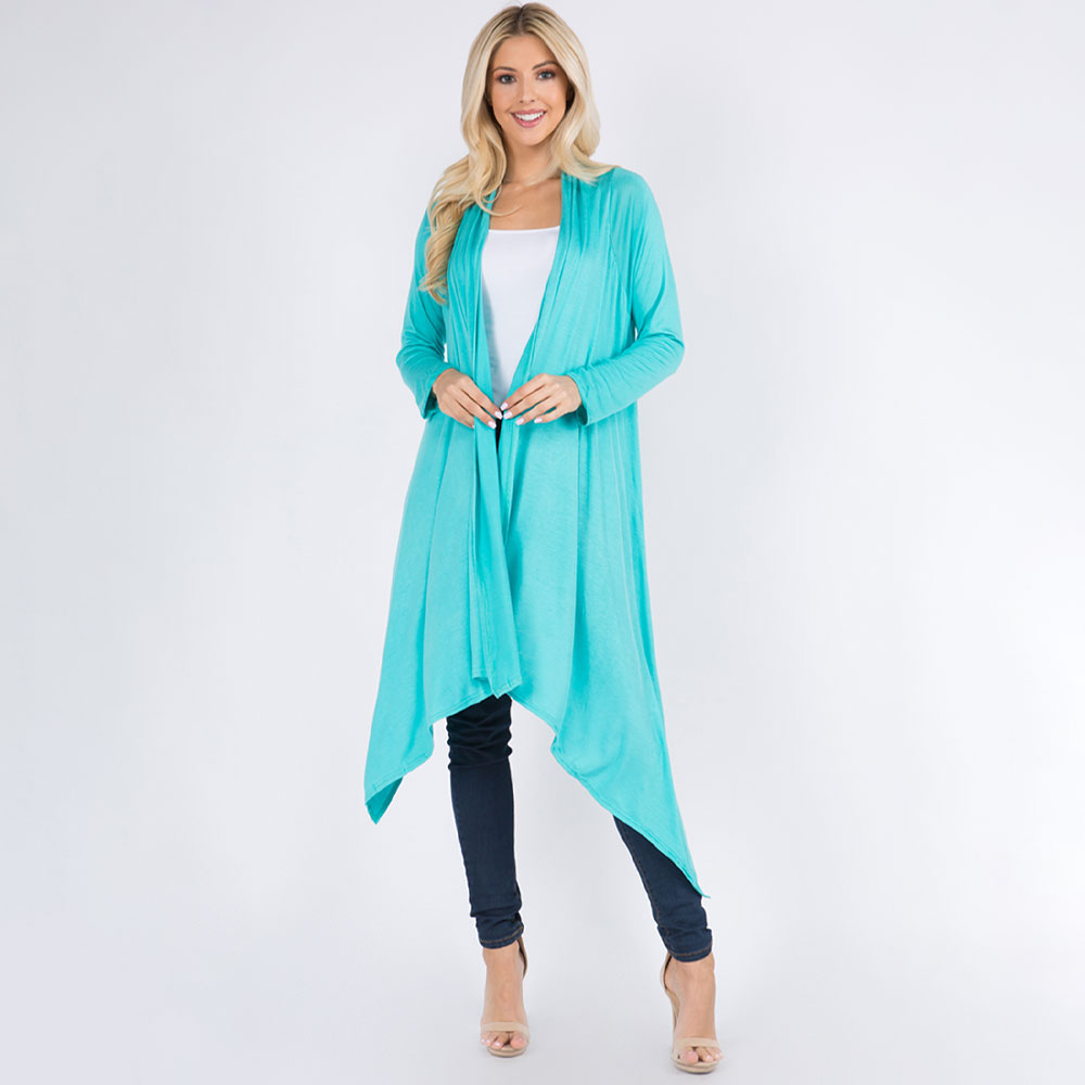 • Elevate your layering game with this open front cardigan featuring an asymmetrical hem and long sleeves. Ideal for casual or dressy outfits in any season.