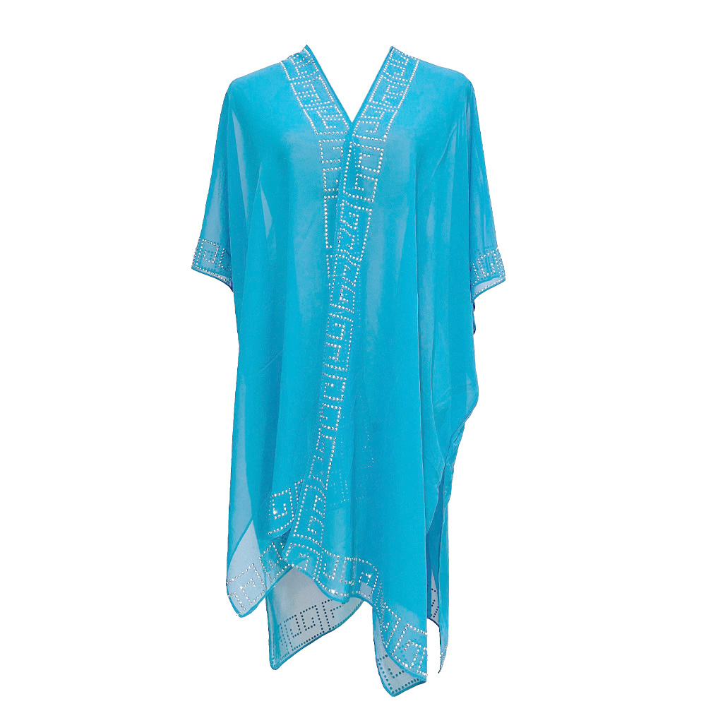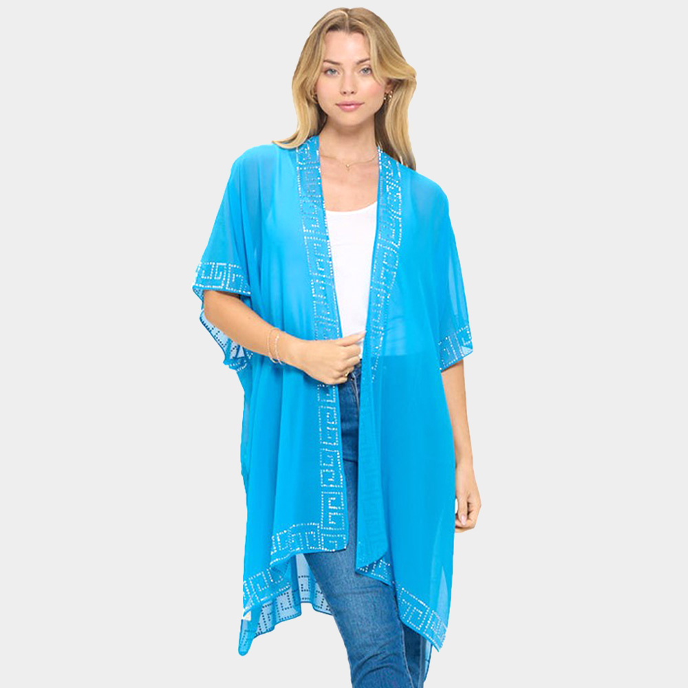 Bling Studded Geometric Pattern Pointed Kimono Poncho