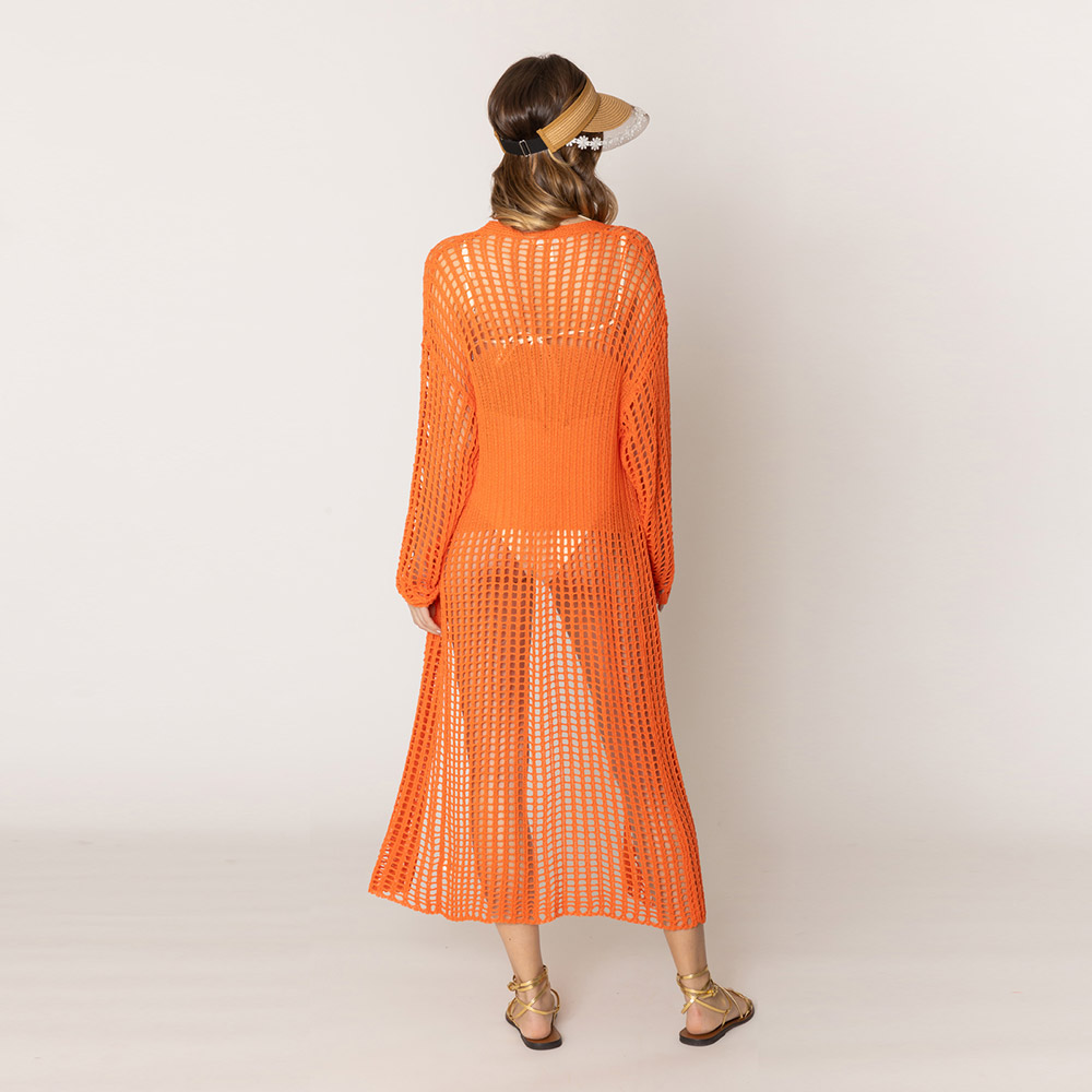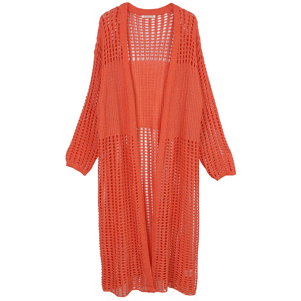 Chest Blocked Crochet Long Cardigan