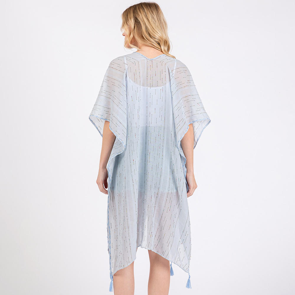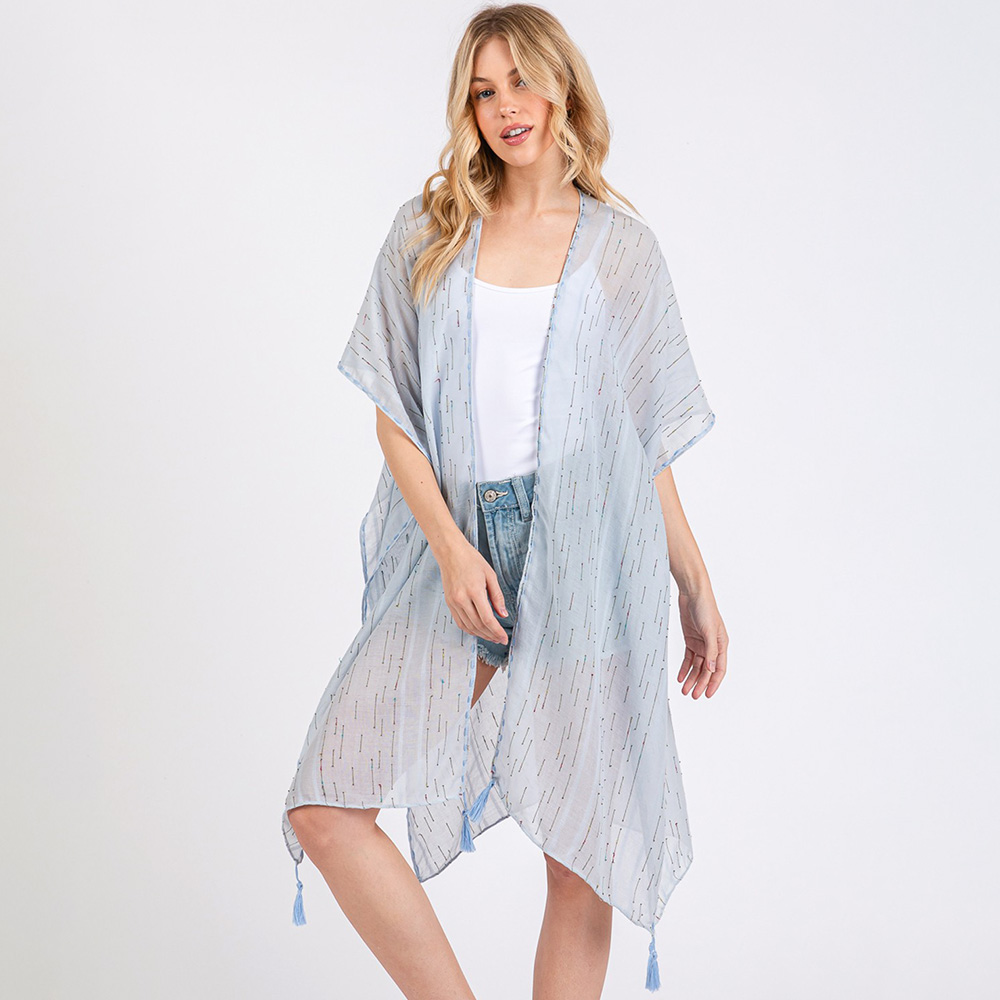 Colored Stitch Trip Tassel Kimono Poncho
