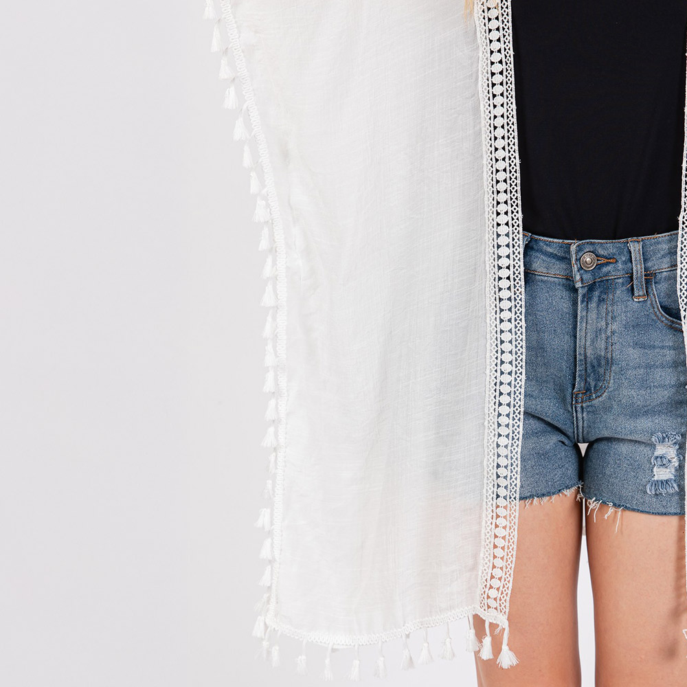 Sheer Flower Lace Tassel Shawl Wrap Poncho