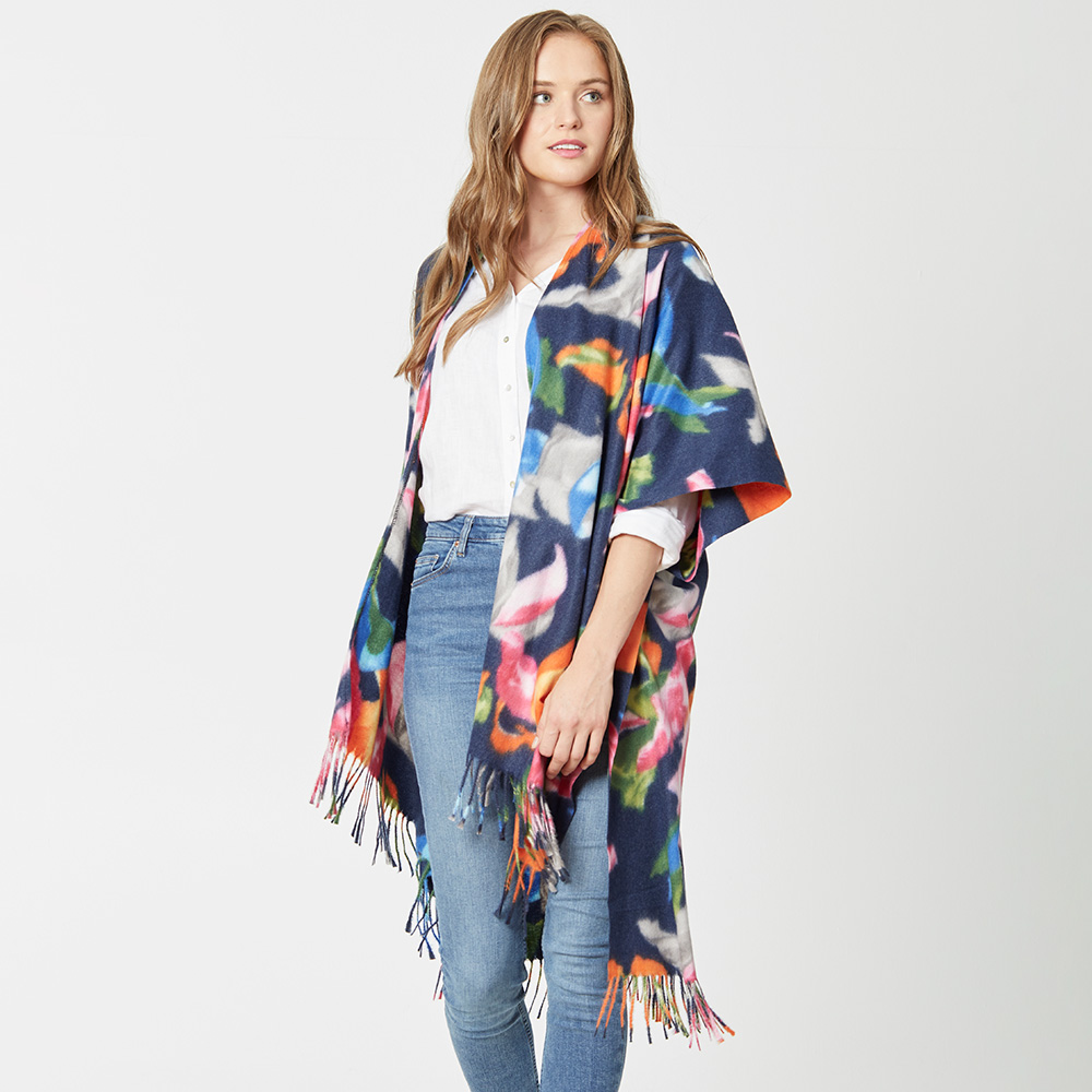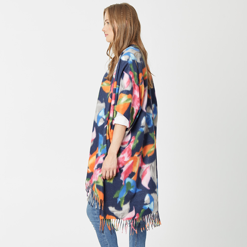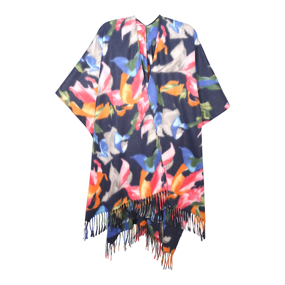 Tropical Leaf Patterned Lace Cover Up Kimono Poncho