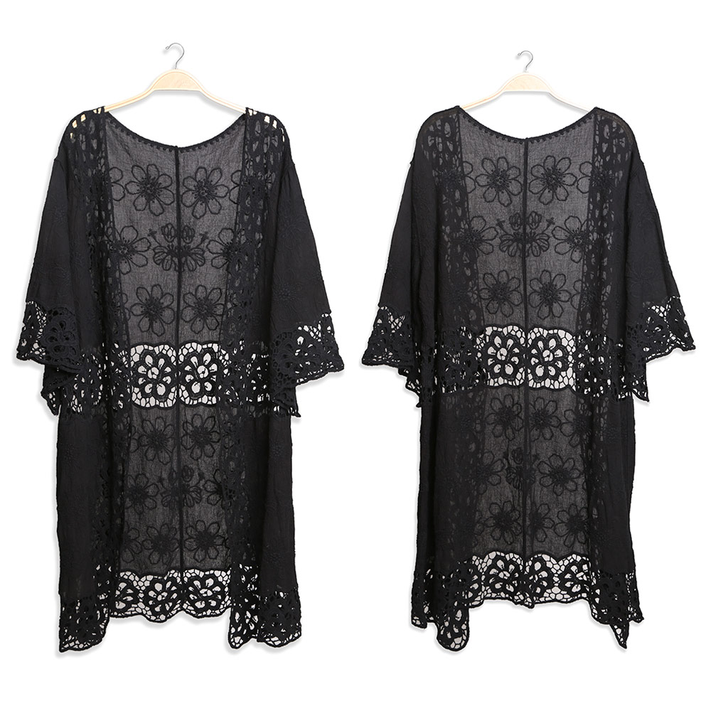 Floral Lace Trimmed Cover Up Kimono Poncho