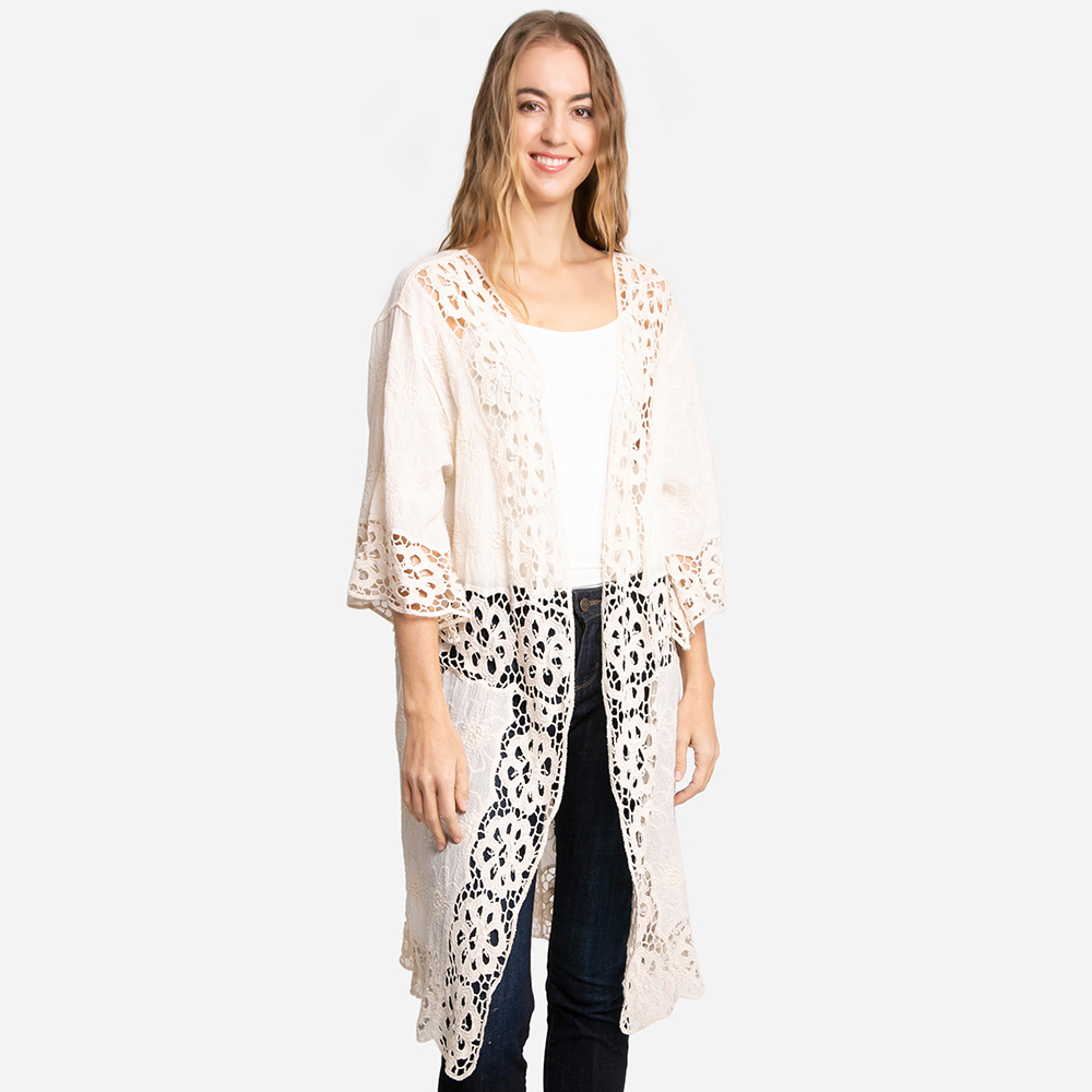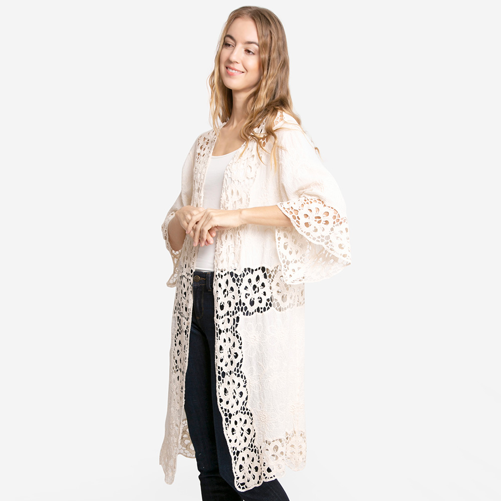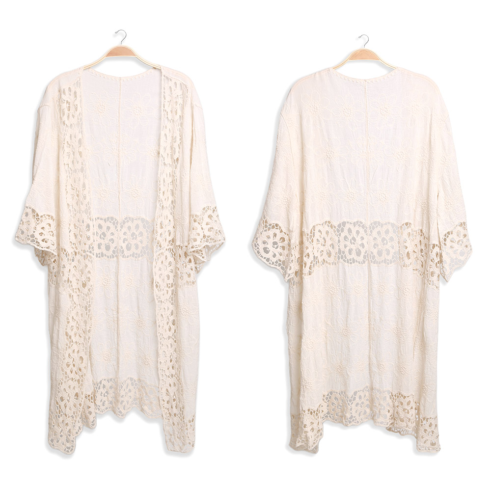 Floral Lace Trimmed Cover Up Kimono Poncho