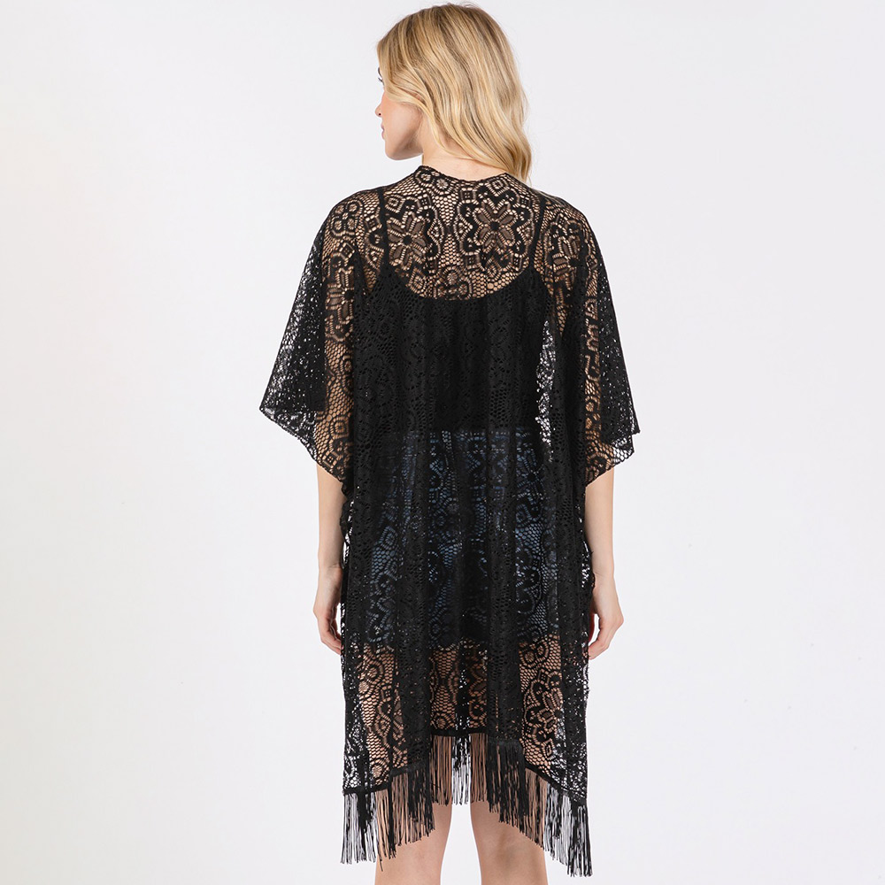 Flower Pattern Crochet Lace Tassel Cover Up Poncho