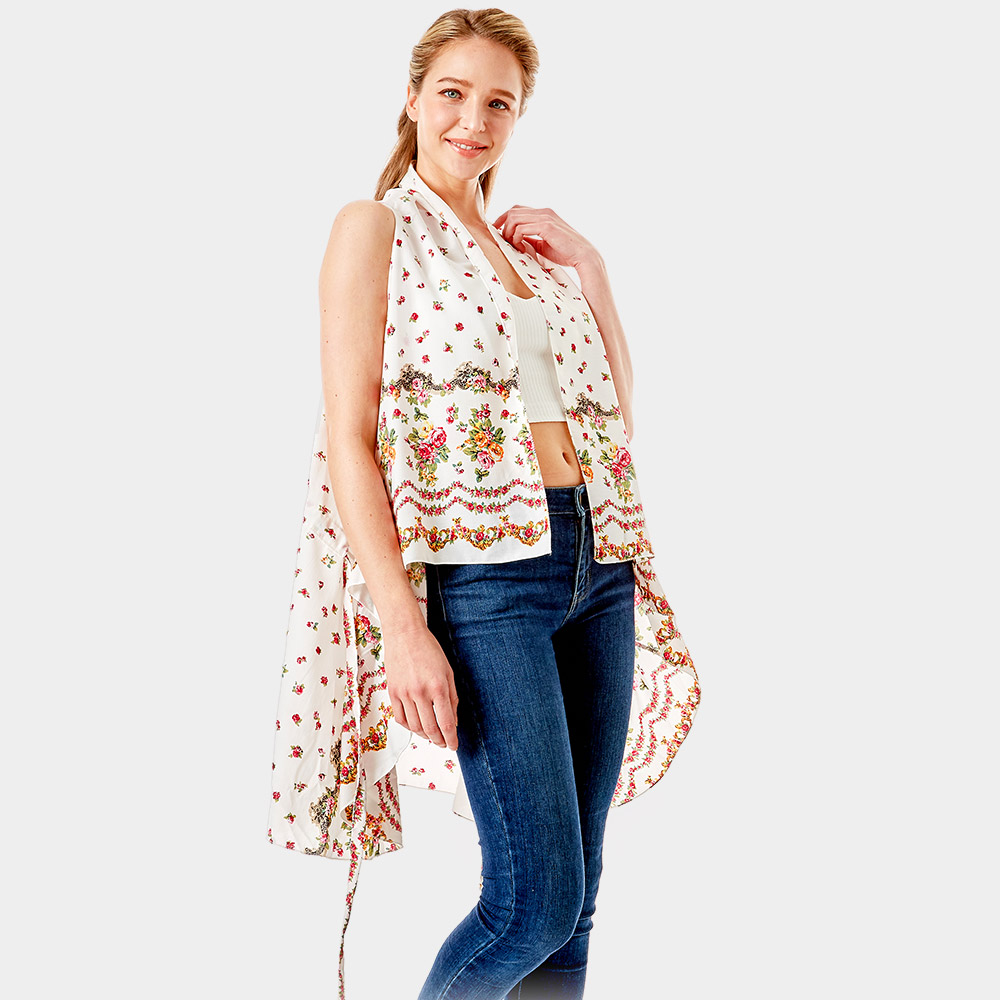 Flower Pattern Print Cover Up Vest