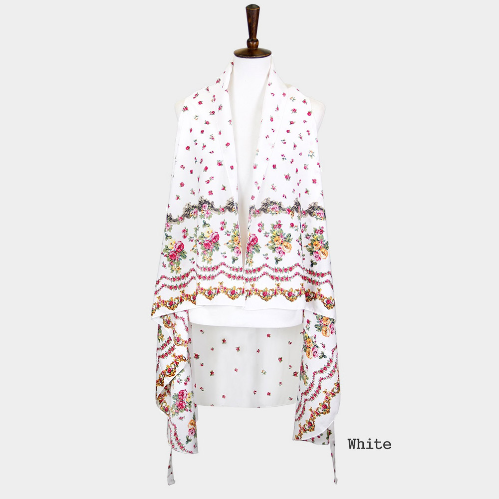 Lightweight Vibrant Tropical Leaf Floral Tassel Scarf