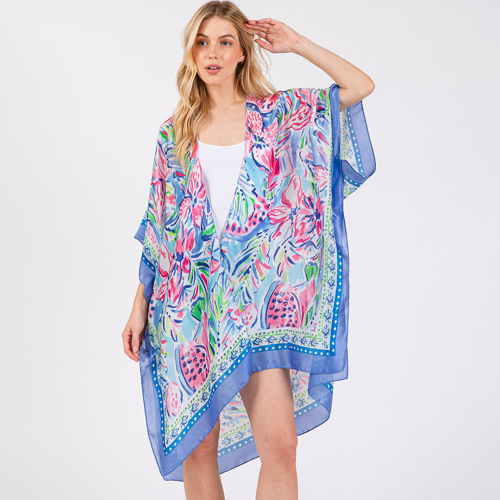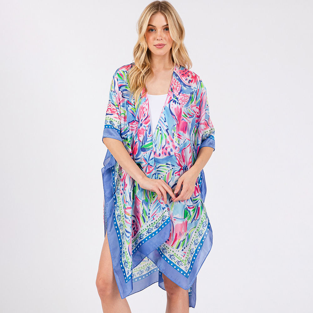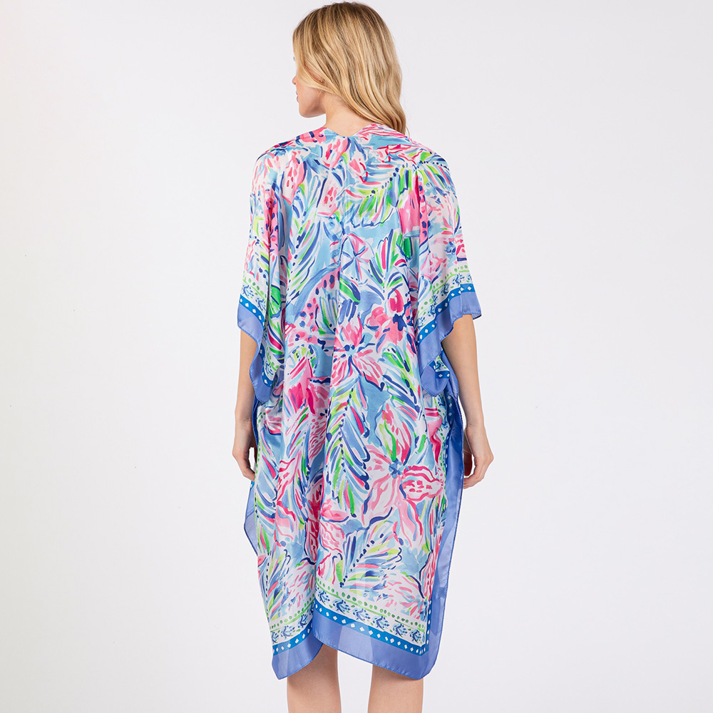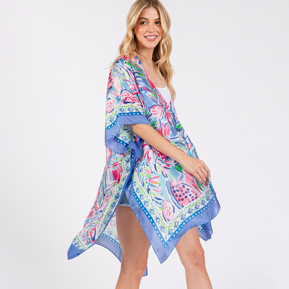 Flower Print Silky Feel Kimono Poncho