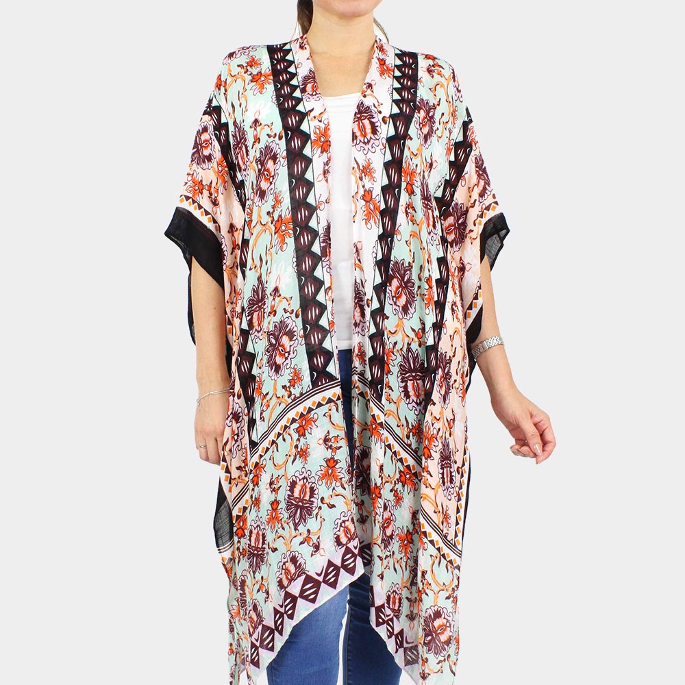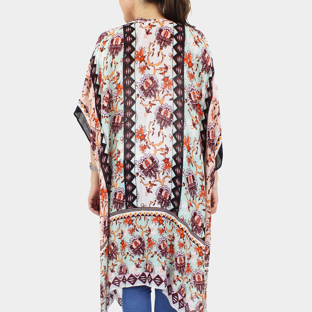 Flower Printed Cover Up Kimono Poncho