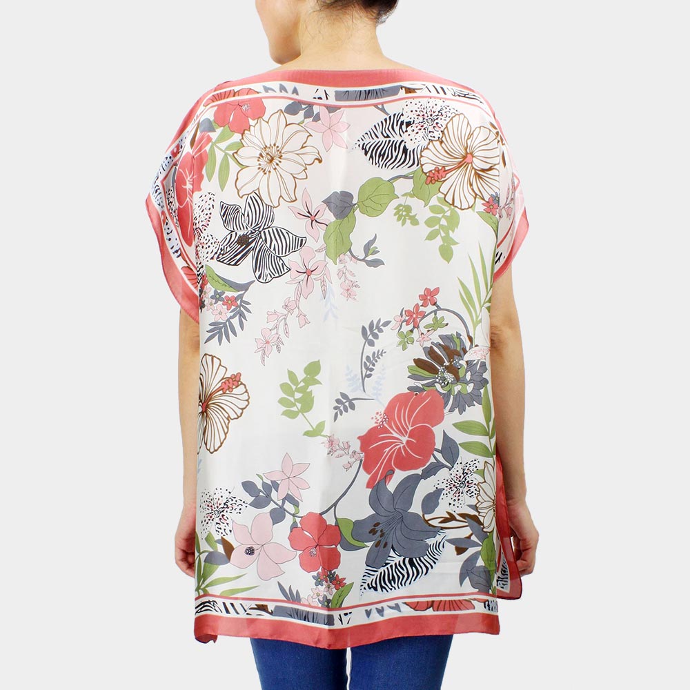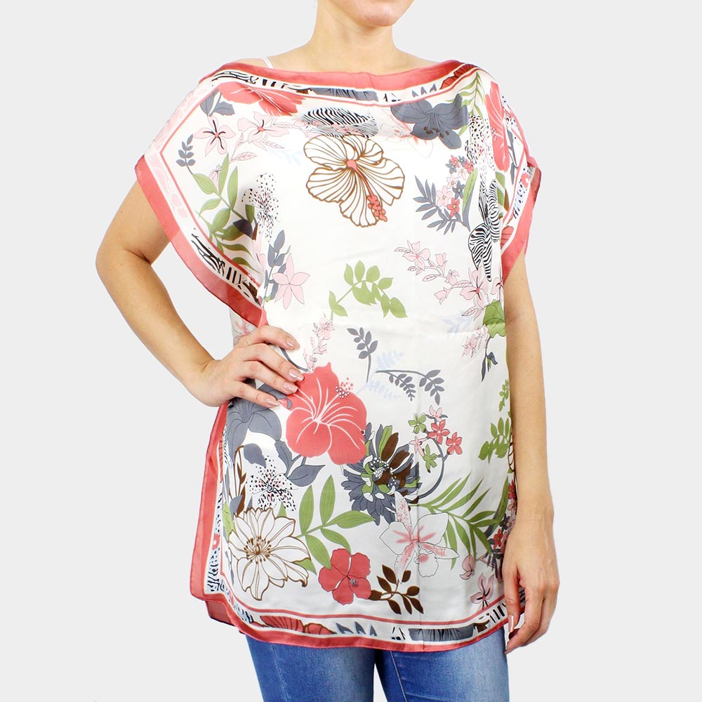 Flower Printed Satin Poncho