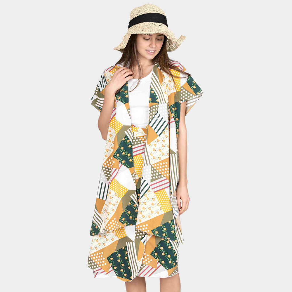 Geometric Patterned Cover Up Kimono Poncho