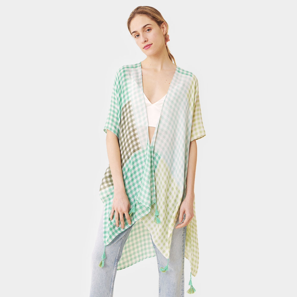 Gingham Check Cover Up Kimono Poncho