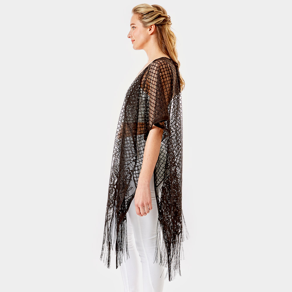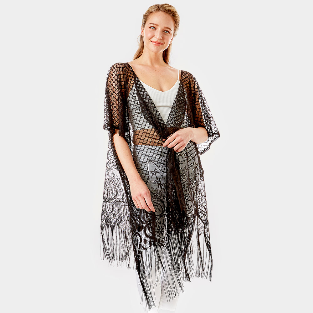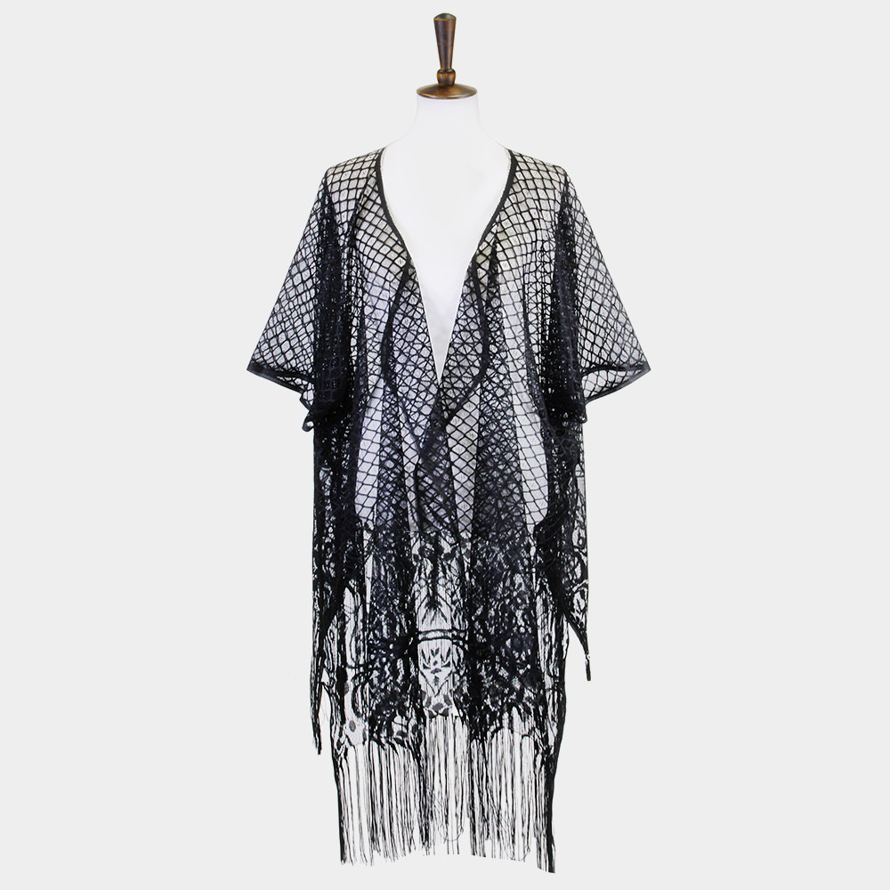 Heart Pattern Detailed Crochet Lace Cover Up Poncho