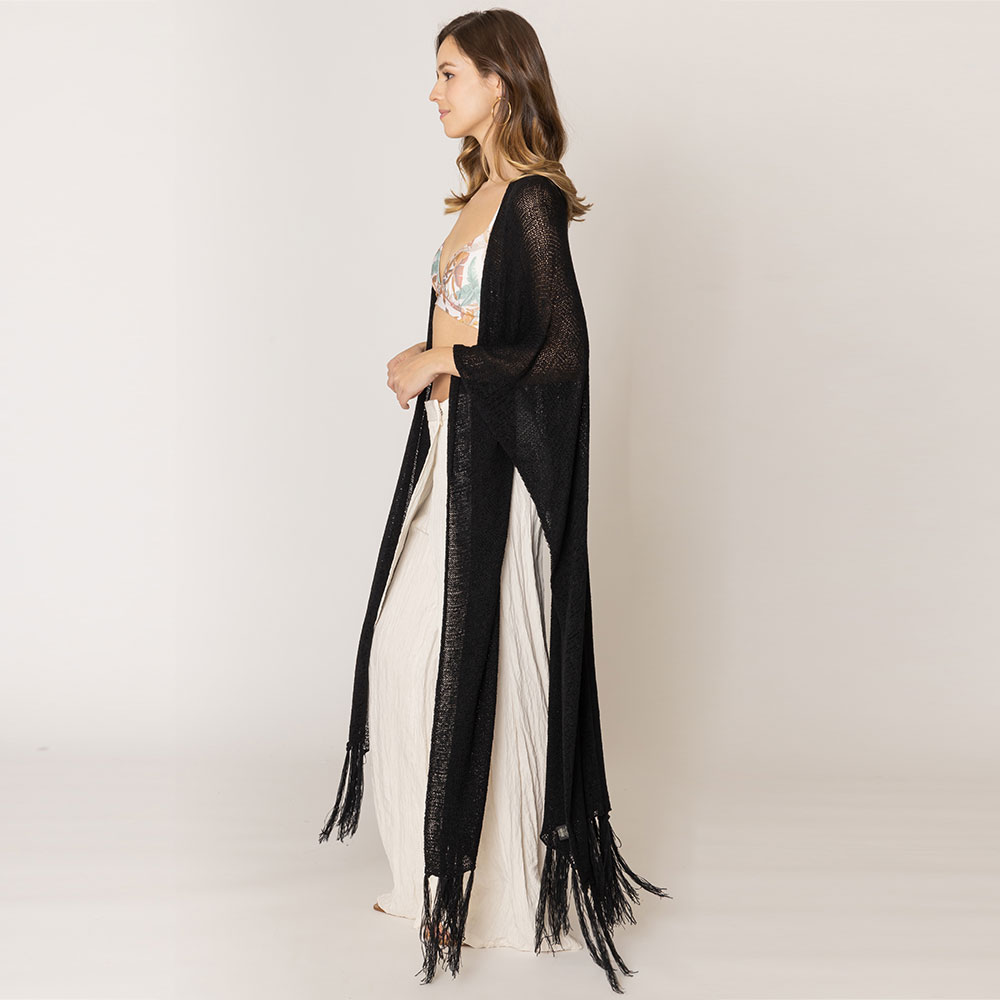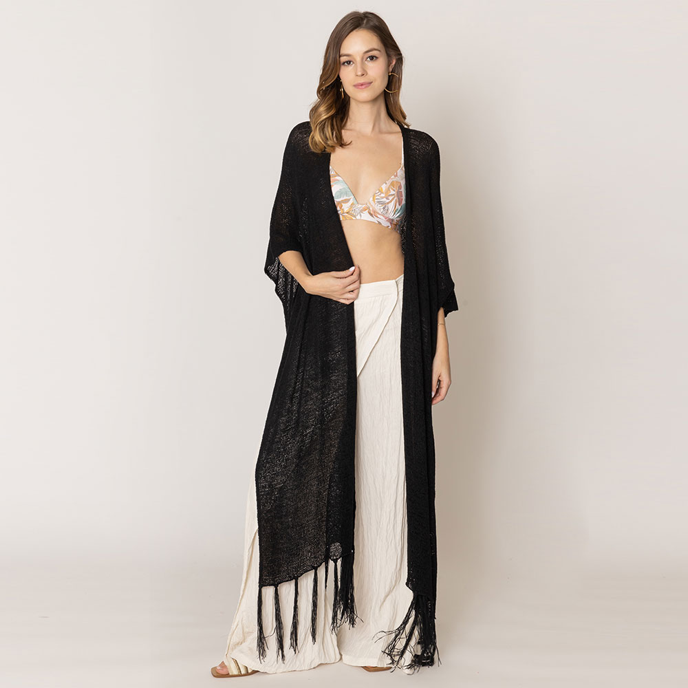 Knit Fringe Kimono Poncho