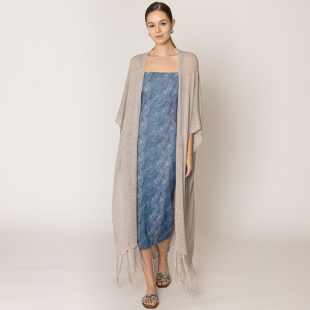 Knit Fringe Kimono Poncho