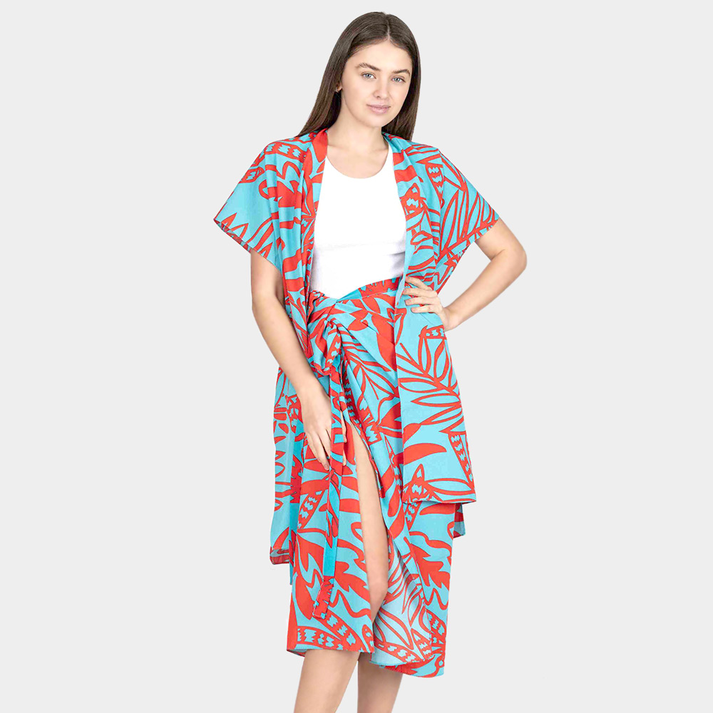 Leaf Patterned Cover Up Kimono Poncho