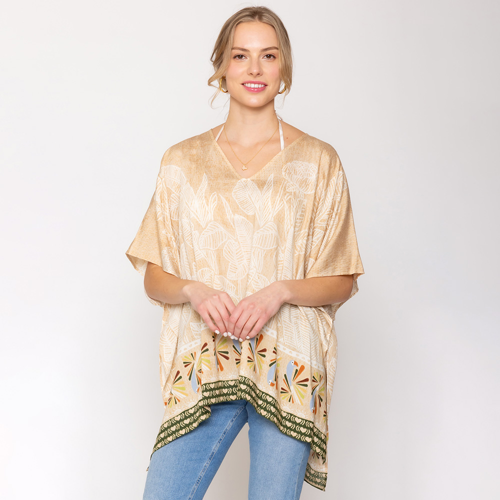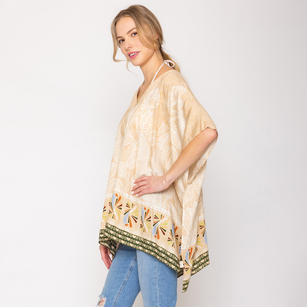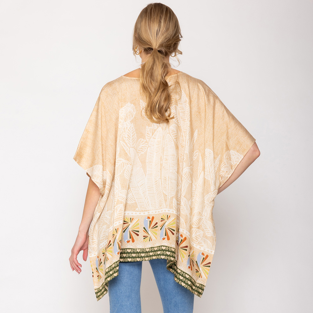 Leaf Print Cover Up Poncho