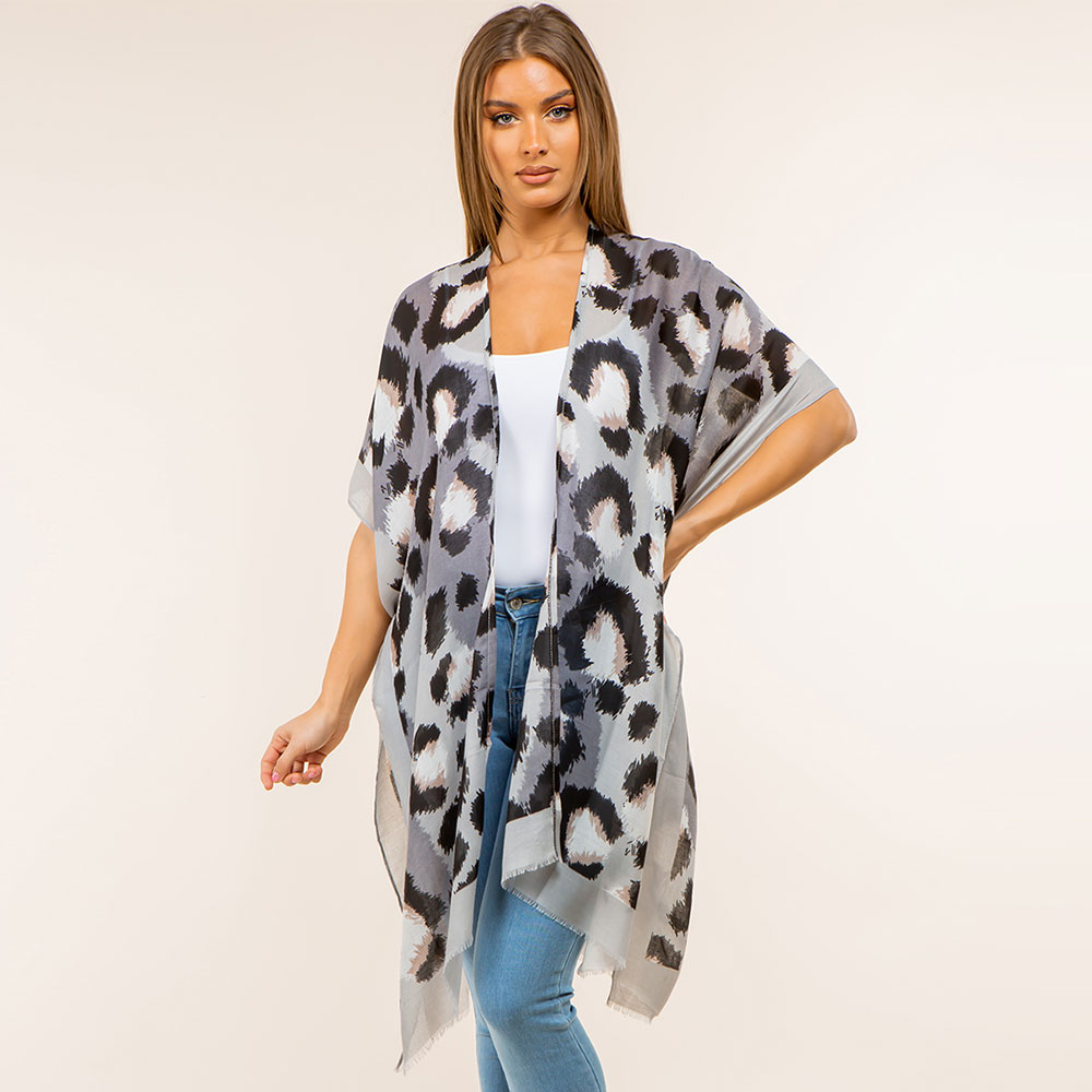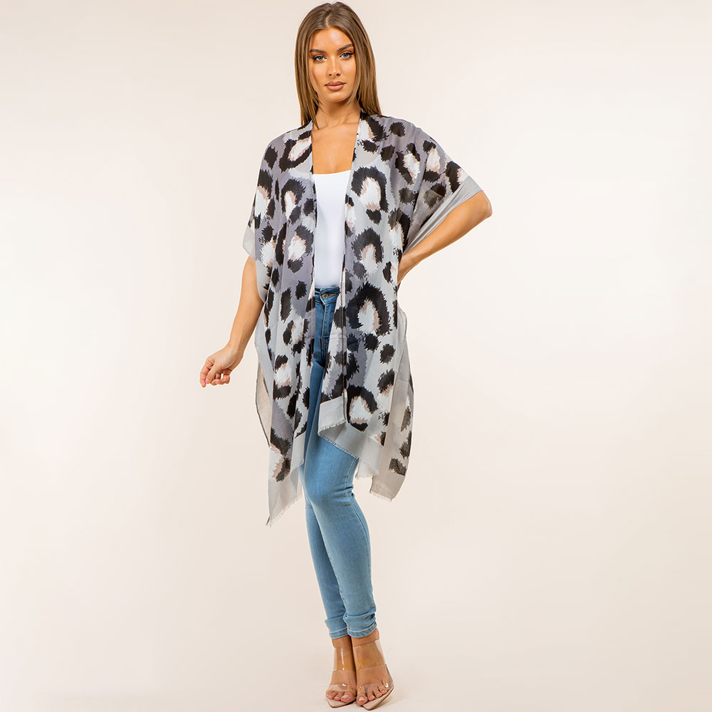 • Make a fierce statement with this animal print kimono. Its flowing, open-front design adds a stylish edge to casual and dressy looks, ideal for layering year-round with ease.