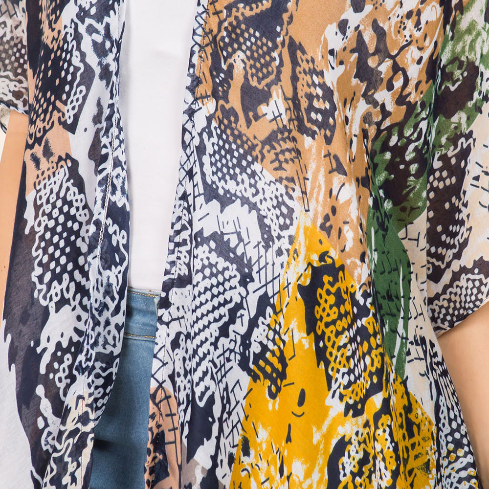• Elevate your wardrobe with this lightweight printed kimono featuring an open front and relaxed silhouette. Ideal for layering over casual or dressy looks, it adds effortless flair to any outfit.